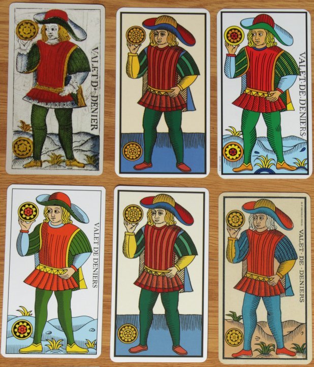 There are two new decks in my collection, the Jodorowsky-Camoin (I found a brand new one in a shop... I thought it was out of print), and the Millenium by Wilfried Houdouin. I also found a standard Grimaud deck. Here are all of them, with improved color fidelity (except the Dusserre, that I don't have anymore). Le Tarot Pas à Pas set, Marianne Costa, Dervy (Pierre Madenié 1709 facsimile) Le Véritable Tarot de Marseille, Kris Hadar, DeMortagne, around 2020 Tarot de Marseille, Alexandre Jodorowsky, Philippe Camoin Tarot de Marseille - Anna Morsucci, Mattia Ottolini, Lo Scarabeo (based on Conver) Le Véritable Tarot de Marseille, Kris Hadar, DeMortagne, 2025 Le Tarot de Marseille - Colette Sylvestre, Grancher (Grimaud 1930 facsimile) Tarot de François Gassmann 1840 - Yves Reynaud 2020 (facsimile) Tarot de Marseille Vintage - Anna Morsucci, Mattia Ottolini, Chiara Demagistris - Lo Scarabeo (based on Conver) Tarot de Marseille - Mary Packard, french 3rd edition - Guy Trédaniel (based on Pierre Madenié) Tarot de Marseille Edition Millenium - Wilfried Houdouin - Trajectoire, 2023 Tarot de Pierre Madenié 1709 - Yves Reynaud 2022 (facsimile with lighter colours) Tarot de Marseille - Emmanuelle Iger - Animae (Nicolas Conver facsimile, cleaned up) Ancien Tarot de Marseille - Grimaud Tarot de Marseille, Paris, 1890 CA - Lo Scarabeo / Anima Antiqua (tarot de Besançon Grimaud 1890 facsimile)
