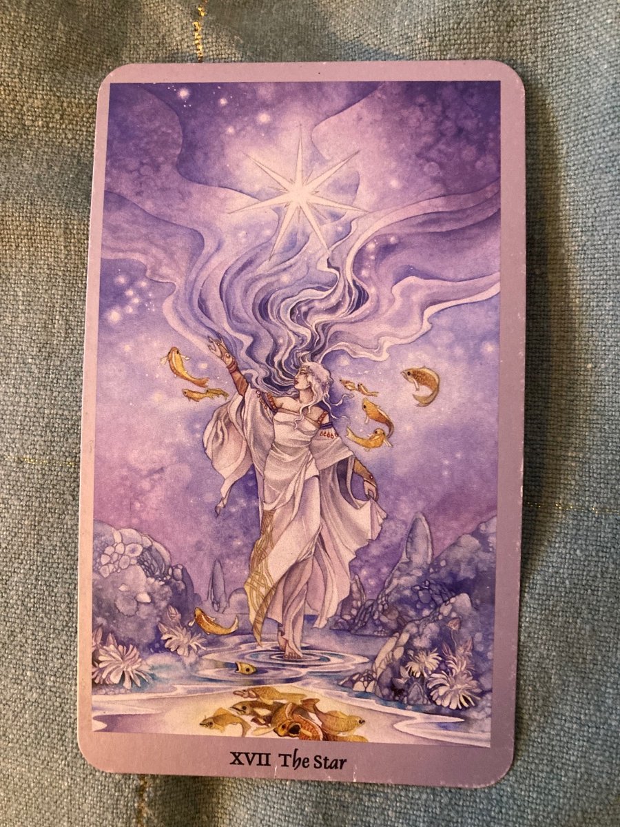 When I was around 22 years old, when I first got my Shadowscapes deck, I heard a tip that if you sleep with a card under your pillow you may dream of it or have interesting dreams. I used to have intense dreams, insomnia, and sleep paralysis so that sounded appealing. I tried it with my favorite card, the Star, and of course when I woke up it was creased 🤪 I went to take a picture of it and it was worse in my memory. I guess it healed 😂 You can mostly see it on the title, which isn’t too bad. If I were to try this again, I’d put it in a book first. I saw that suggestion after trying my experiment. It should’ve been obvious to me, but lesson learned anyway. And yeah, I didn’t stop using the deck, of course. -