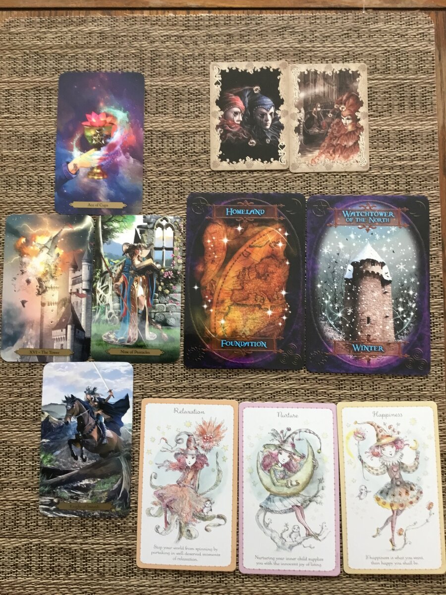 Petalene Posted July 29, 2020 Posted July 29, 2020 I frequently use more than one deck, but I tend to mix it up with tarot, playing cards, and oracle cards. I usually use playing cards to get on overview of the situation, have a main tarot spread, and a few oracle cards for final thoughts. Synchronicity across the different decks can be interesting and informative. Here’s one I did recently with four decks.