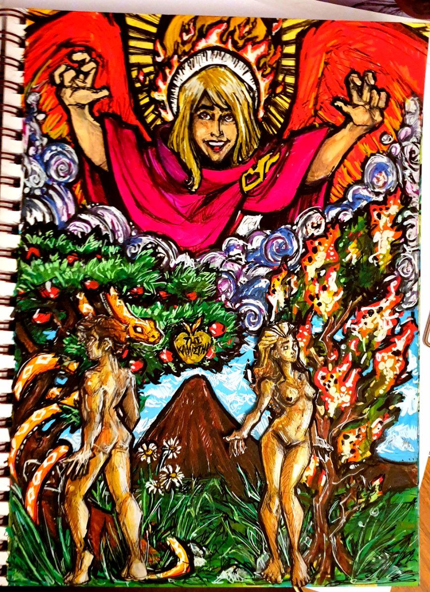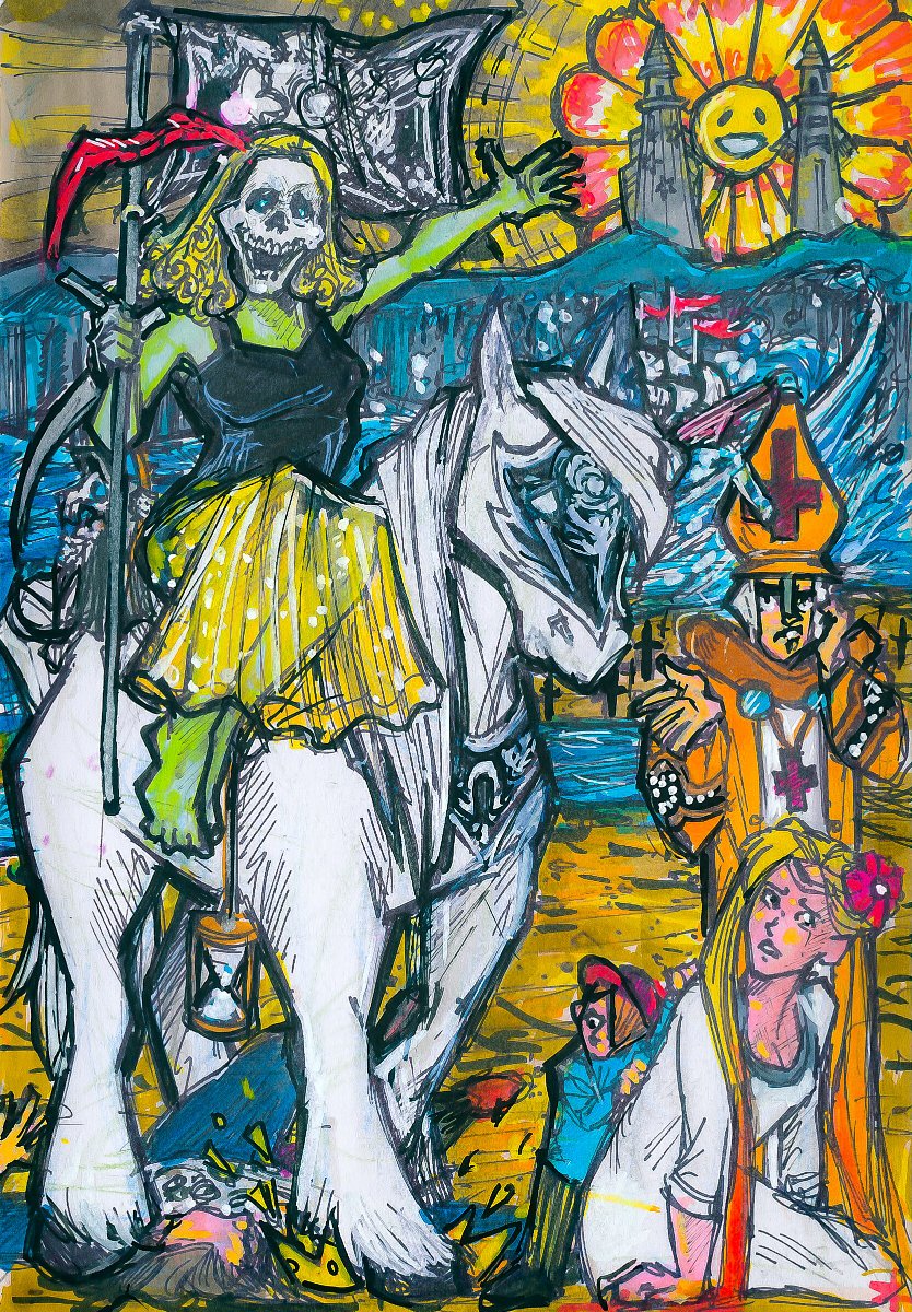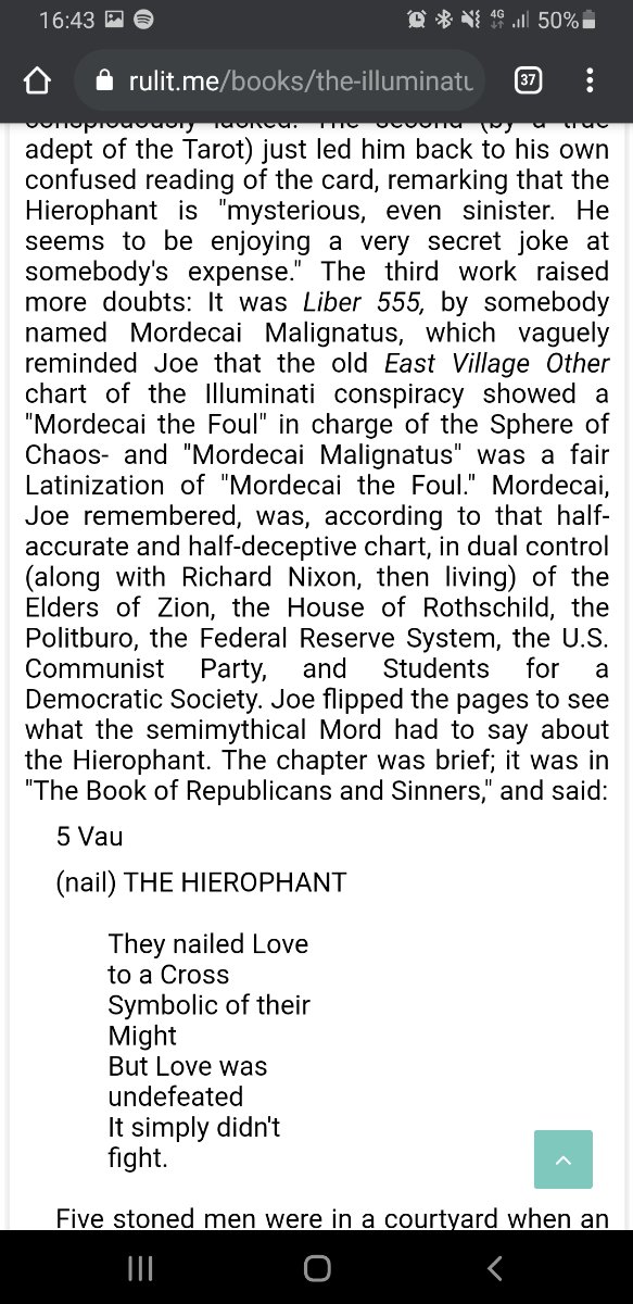 GalllowsInk Posted November 17, 2020 Author Posted November 17, 2020 1 hour ago, katrinka said: We've all been dum dums I suppose, it's very easy to do that. If it happens again try CTRL z. What caught my eye was the golden apple of Eris on the Hierophant. I think it should definitely be included in more decks - but I'm not sure how it fits with that particular card? Yes, it started the Trojan War and religion is at the root of a lot of wars, but that's superficial. It doesn't begin to capture the vibe of the apple. 😉 Some recommended reading (and I promise you it's a quick read and not dry or boring at all!)https://www.yumpu.com/en/document/read/22821215/the-book-of-eris-principia-discordia ...In any case Id not actually read or looked much into the books before I picked them up, though I knew of them as something an acquintance from years before was really into, and he **** me, so I didn't really have a desire to read them because they also **** me, by proxy. when I DID start reading them, on a whim, I did raise an eyebrow over the inclusion of Eris, and The Apple....so anyway, I drew THIS version of the Heirophant on April 29, with very some specific reasons for a few of the Elements, like the Dobbs Ikon andhttps://subgenius.fandom.com/wiki/Dobbs_Ikon in place of the Papal / Triple Cross he holds, but undecided reasons for some of the others, like getting rid of the two pillars of Obedience/disobedience and replacing them with the two "Data Cloud" icons....they WERE meant to be just a representation of the right and left side of the brain, however, I figured I could work them in as a representation of the collective unconcious....theeeeen I finished the drawing and went to bed and read some more of the book, and got to this bit, and thought...huh. that's a bit weird. Also my name is Joe, which made it weirder. ....but, that's neither here nor there. And not entirely relevant. ....in saying that, it makes sense, even if it is a bit confusing.