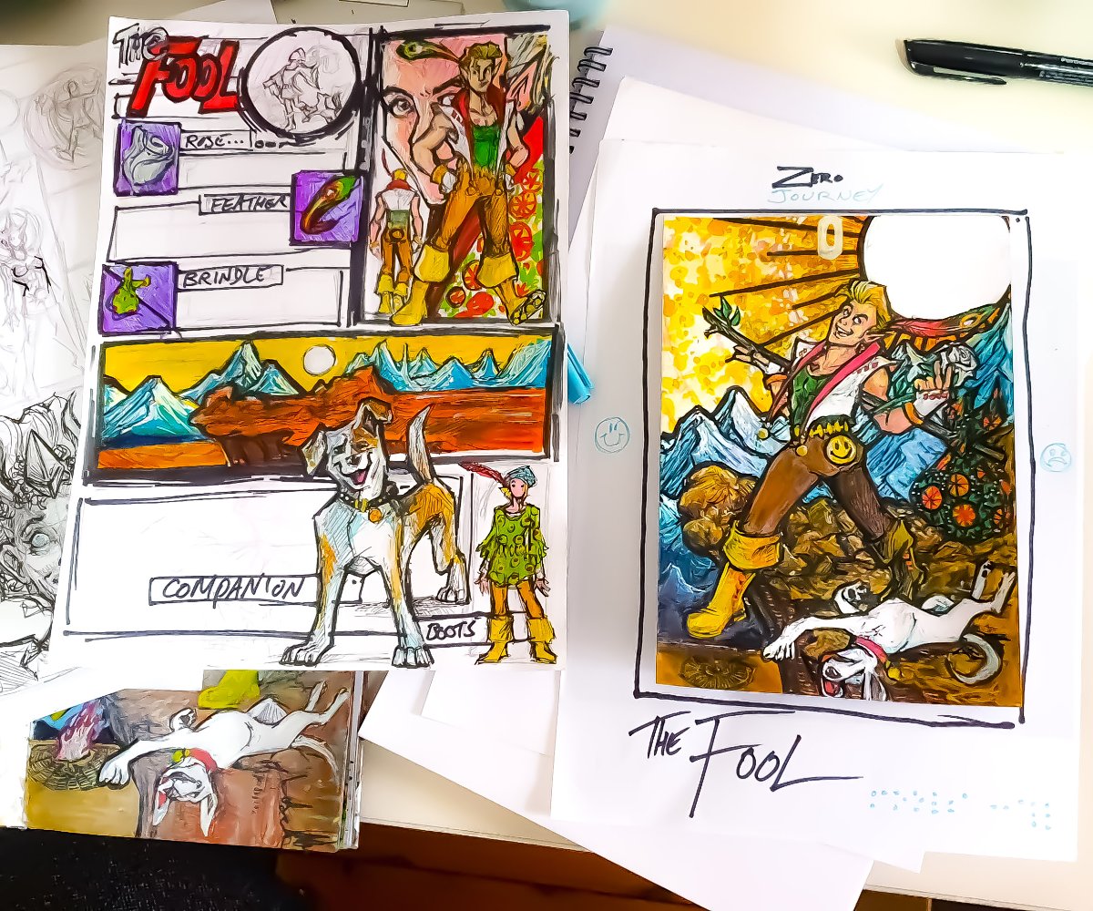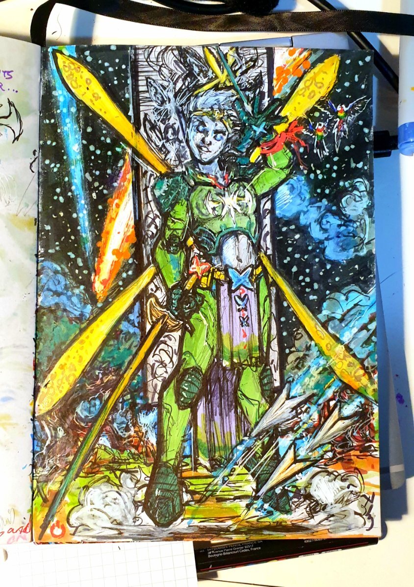 GalllowsInk Posted June 14, 2021 Author Posted June 14, 2021 3 hours ago, vulprix said: @GalllowsInk that Prince of Wands is SO BADASS. Love him. The detailed work on the III of Swords is also gorgeous. Great to see your posts again 🙂 Thankyou! I appreciate it. I meant to post here a lot more, but I didnt want to make a nuisance of myself in posting too much... Soooo the video seemed a good option to show how far Ive come .. Im still fiddling about with the colour scheme to make the flames more pronounced and flicked through with green, but I'm fairly happy with how it turned put I wanted to depict the Princes as Knights, but I didnt want to use standard "medieval" looks because the RWS deck is rife with generic knights and Damsels....I actually Borrowed this ones "armour" from some concept art of She-ra from the "Masters of the Universe" movie. When I redraw it I'll probably lean into the whole road warriorb/ tech element a little more because it seems to fit the whole vibe of the card .... The Three of Swords Shows a Golden seam running through it where it has been repaired through Kinsugi....Except the ink I used doesnt quite show up as gold here. .. .its the thought that counts I suppose.