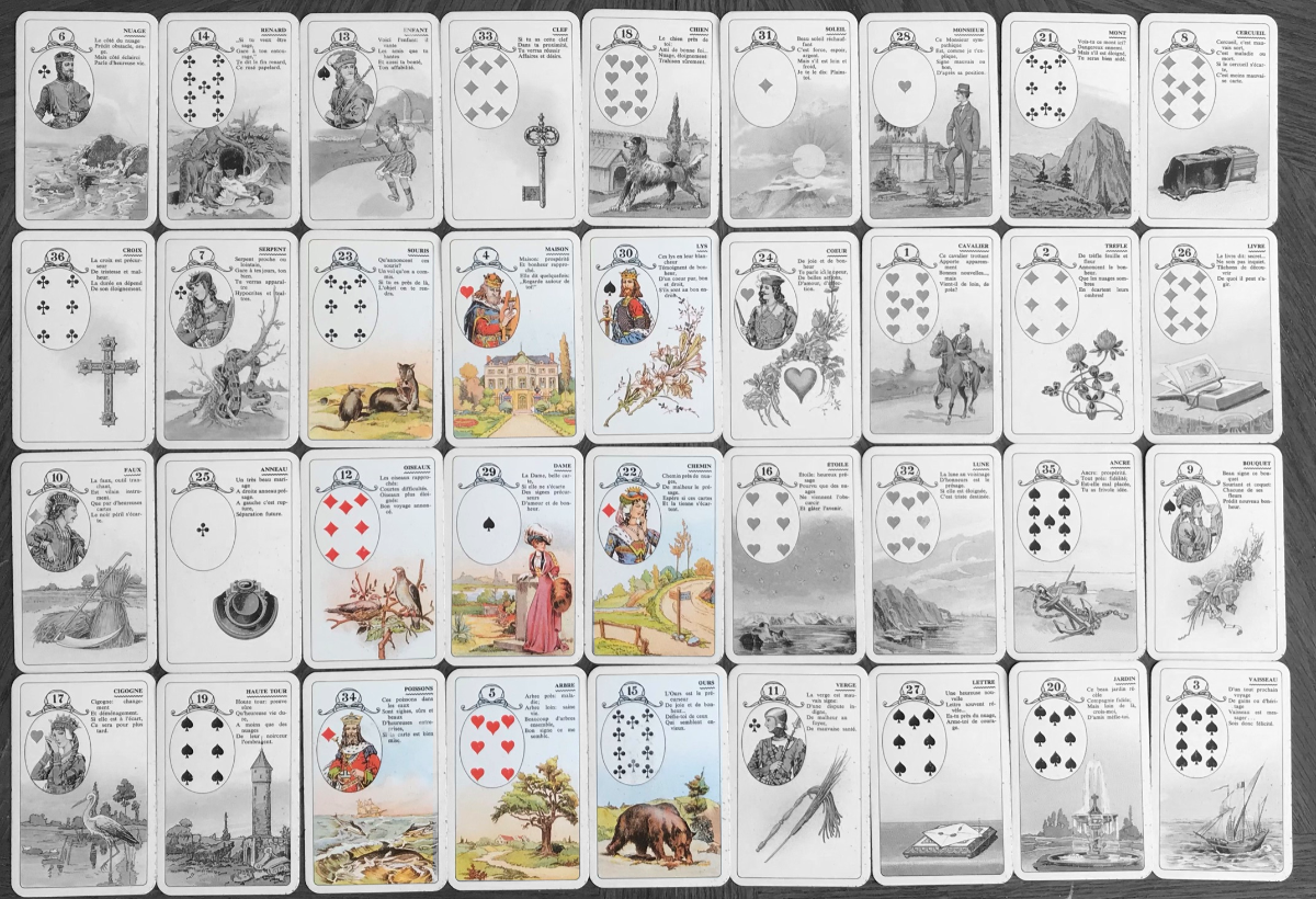 Guest Posted March 25, 2021 Posted March 25, 2021 (edited) Answering a Question: Finally, should you have still unanswered questions, you find the appropriate significator in the tableau, e.g. for finances, the Fishes, for love you go to the Heart and so on. You then draw the square around the card and read it much as the carré above. From memory, Droesbeke focused on the cards above (external influences), below (your influence), left (the past) and right (the future). Edited March 26, 2021 by Guest