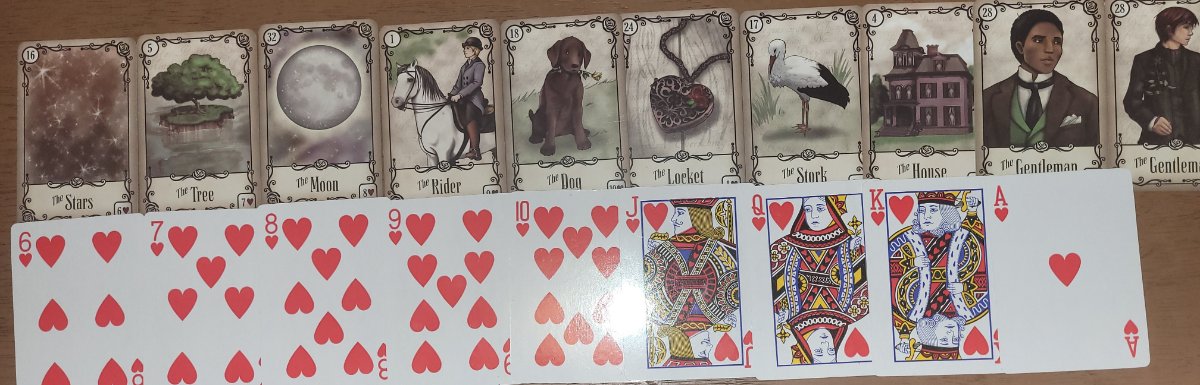 HOLMES Posted April 10, 2021 Author Posted April 10, 2021 I am using the 4 paths of the lenormand universe by caitlin matthews as inspiration for this journey. So i am going to do this for the four suit,to help me of course but others if it helps to journey through the nine cards from 6 to a. I spent last making notes from the books. But not going to post them as one should buy the books This first one deals with the path of destiny which is the heart suit inserts. In my study last night i fix my own meaning of the tree I think why is the heart suit on the heart but not in the ring. I thought about it without looking up the ring The answer i thought about was back then many rings were marriage of convenience, of power.. it is a good match. Any how see where comes up for that when i get there. I also thought about the masculinity of the heart suit. To me for now i still reduce hearts to its basic meaning of friendship, instead of gifts.thought when you express your love to another it is a gift. In the messenger i thought about the idea of affection.. good news is sure about romance but also other issues. So asi thought last night.. I thought of tragedy where if the message doesn't get there in time to perhaps fix up miscommunication that the lord object of affection may toss herself off the cliffs. So i guess that would be only tragedic if the coffin scythe was there as extreme The journey of destiny of love In the stars i look to friendship from the popular people and guidance from fortune telling. I strive to keep good health by walking in nature. Perhaps my ancestors had trees on our land that was good (tree of herb, food medicine) i realize a true gift of the heart takes time to raise a tree. From there i look yonder moon and make a personal promise to work hard at the career. To become known for my work will be great acclaim. Gee i sure hope to be promoted in a month. From there i seek to give good news to friends or perhaps to save someone. The journey is fun but the goal of showing my good heart is important to me From here i seek a companion to be my best friend.. i always wanted a dog so i can be loyal and have that loyalty return! It could be a bestest friend or servant. From here i decide i am going be the jack of hearts and show my desire that i really love her in that way. If she doesn't return my love i will strive to be the bestest friend I put myself into thoughts of how al lady of hearts would act. It occurs to me she would want to move to the best places.deal with birth and taking care of the funerals if out child dies. So she would be master of decorating the house. She would expect me to be master of the house.. it is from here i could make long term business deals with dearest friends. I am the gentleman still i am very picture of masculinity being very viral,able, and able to defend myself. I seek to build with my hearts desire to keep my family line going I have come far but got ling ways to go as it is just the beginning. I have just met my partner,got a house and dog. Maybe built it with the beautiful tree bring me peace
