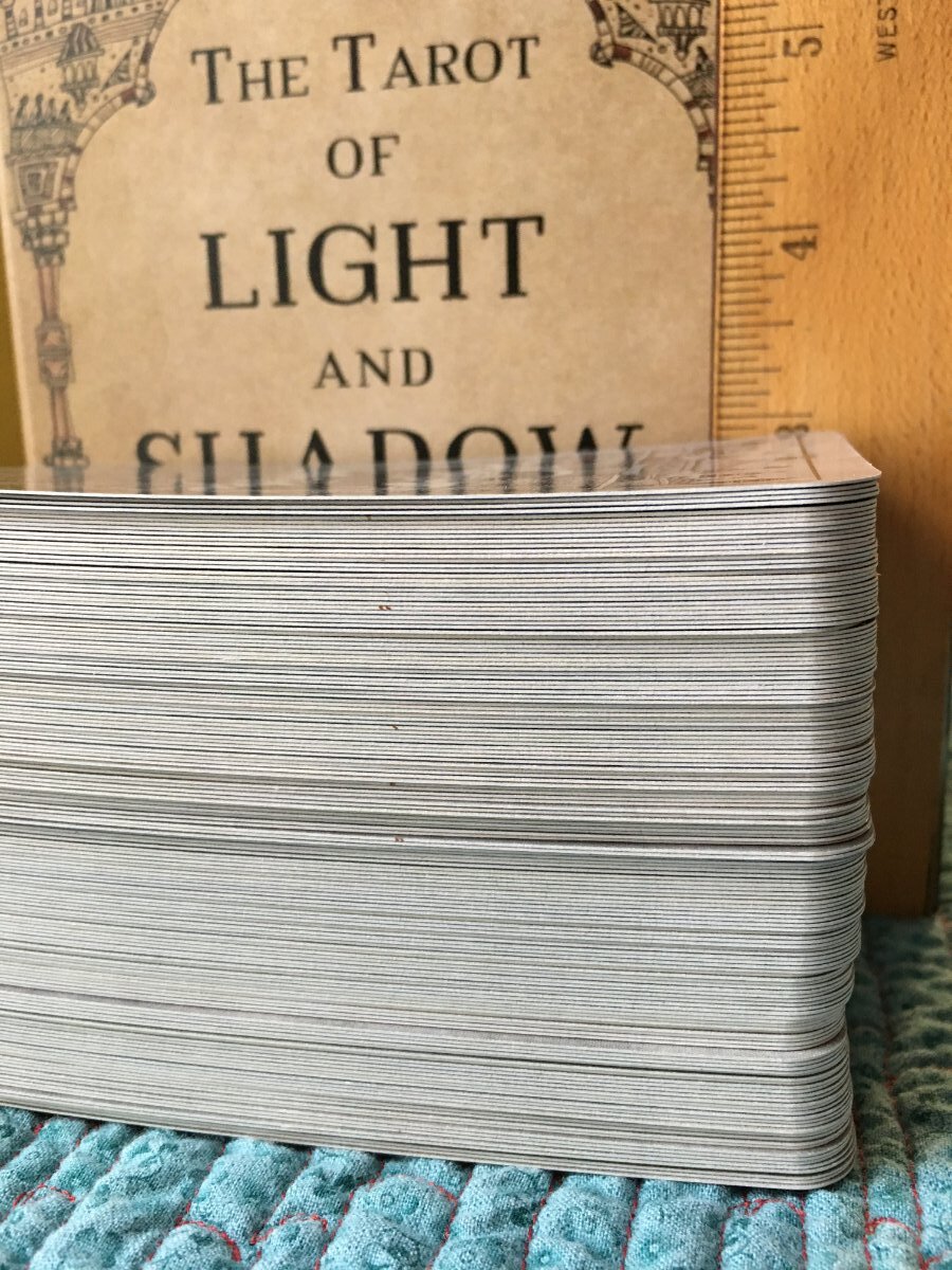 Madame Squee Posted April 17, 2021 Posted April 17, 2021 Tarot of Light and Shadow comprises two full decks. I blended them after reading John Mathews' introduction and suggestions. Wow! What a stack! The cards are heavy and slick, and so nice to work with... Lots of calming shuffling and mixing. I love it!