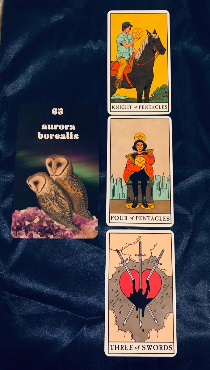 vulprix Posted May 4, 2021 Posted May 4, 2021 (edited) On 5/2/2021 at 4:12 PM, VGimlet said: I really like the Deirdre of the Sorrows Tarot Bodhiseed, one of my favorites. Don't know if it's the card stock, or the art, or something else. I am only seeing a glimpse of the deck for the first time, @Bodhiseed, but I love it too! Very beautiful! I did a reading for myself where I examined my base, neutral, and higher selves as I project myself outward, and then I drew a companion card from my very favorite oracle deck, the Begin deck. Some notes on the Modern Witch Tarot: - SO hard to shuffle! The standard tarot size mixed with slippery and thick cardstock is kind of a dream, but my hands are a bit small and they go all over the place. - I do love that the thin white borders were not corrupted by goddamned copyright information. So many props to the artist and publishing team. - I dislike the guidebook overall and find it a little too cute... but the cards are a treat and I feel very seen and represented by them. The reading itself for the tarot is straightforward, I feel, but I do a lot of ruminating in the sorrows, the jealousies, the “awakening to heartbreak” that the III of Swords evokes so it was good to be called out there. I also get the impression that I need to force myself out of my IV of Pentacles-ness often 🙂 I can be a conservator of order and am always mindful of material stakes. I enjoy seeing my higher self as the Knight of Pentacles. The pents suit is so often seen as “low” and earthy and Assiah and all of that, but it is usually my favorite suit. So noble and honest, and close to the ground in a subtle and understanding way. (Harry Potter nerdism ahead...) One time, one of my workers said that she thought I was such a Hufflepuff, even though most people see me as more Ravenclaw (and I like to see myself as Gryffindor). And I was unexpectedly charmed by this statement when she went on to compliment my work ethic and honesty, as well as my forthcoming with other people. It was praise that I don’t think I have ever gotten before. This Knight of Pentacles card makes me hope to always be hardworking and humble in the eyes of others 🙂 That kind of recognition only comes earned, through steadfast behavior. The Aurora Borealis card also relates to humility, in that it is about reveling in mystery and letting yourself be enchanted. Thanks for letting me share!! Edited May 4, 2021 by vulprix