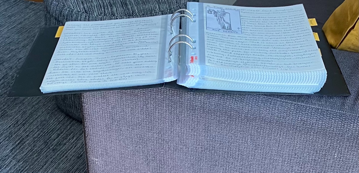 Raggydoll Posted May 5, 2021 Posted May 5, 2021 When I made my old tarot journal I used an a5 binder and plastic sleeves. I gathered everything about each card in a separate sleeve. Then I created a page and glued in a picture of the card, and started gathering my thoughts on symbolism and meanings. That made it easy to update and add more information, and the pages has survived really well over the years. I still flip through it from time to time. Fun memories! 🙂 Digital journals are great too, I just prefer the tactile feel of an actual journal and do enjoy being able to access it without turning on a device 😊 (I have photographed the pages so that I can access it digitally too)