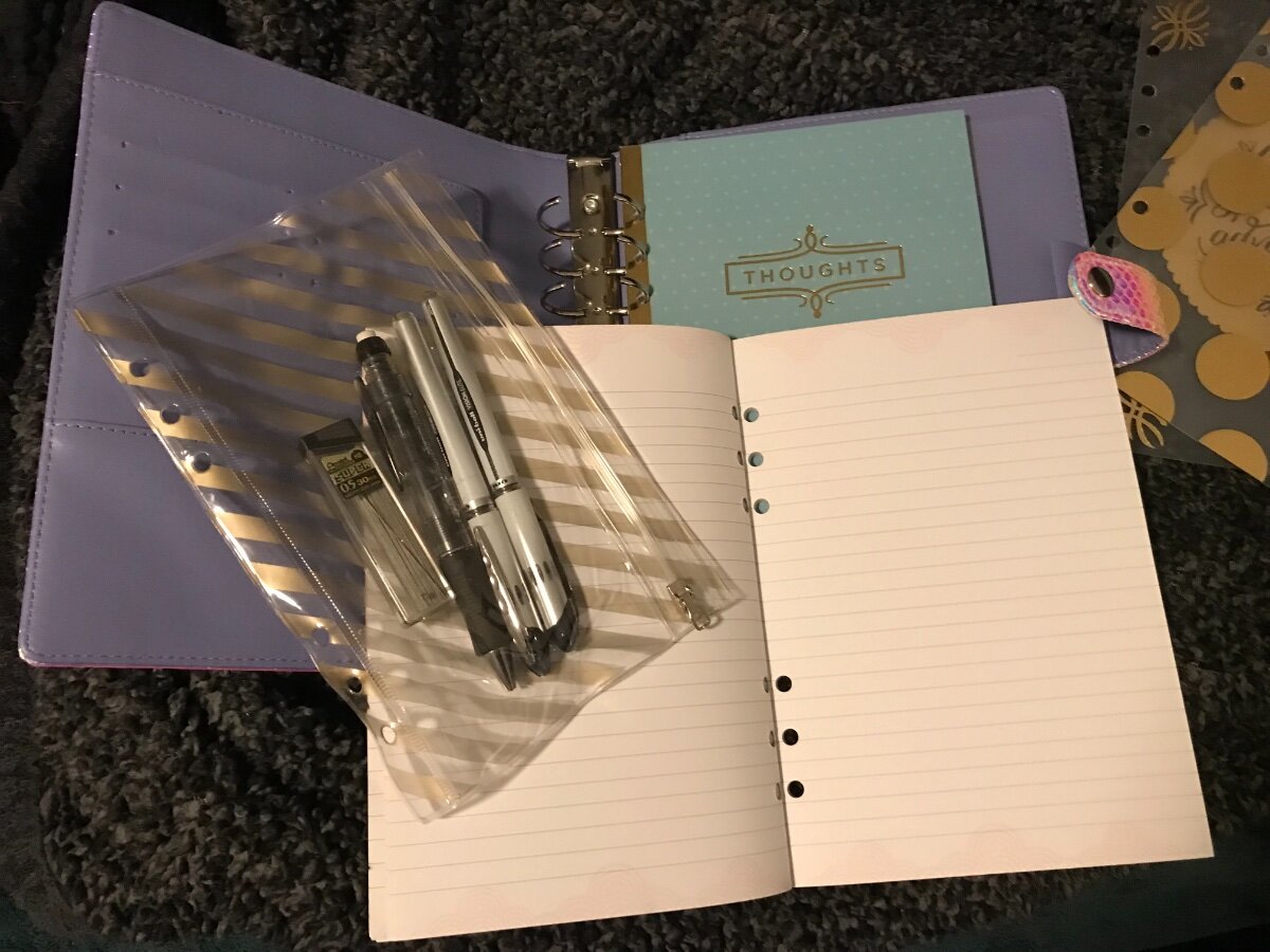 Mesha Posted August 7, 2021 Posted August 7, 2021 I found this gorgeous datebook for mine. I figured it just had to inspire me! It came with a handy pencil case and a few dividers as well as a bunch of stuff I likely won’t use. I need to get a few more dividers for it though or figure out how to cut some down. I picked up these Thoughts books as cost effective journaling paper for it. I don’t know why loose leaf for these smaller binders is so expensive! The sheets are half the size 😕 I may just invest in a paper cutter and hole punch in the future. I do like the size of this better then a standard binder since I tote it around a lot.