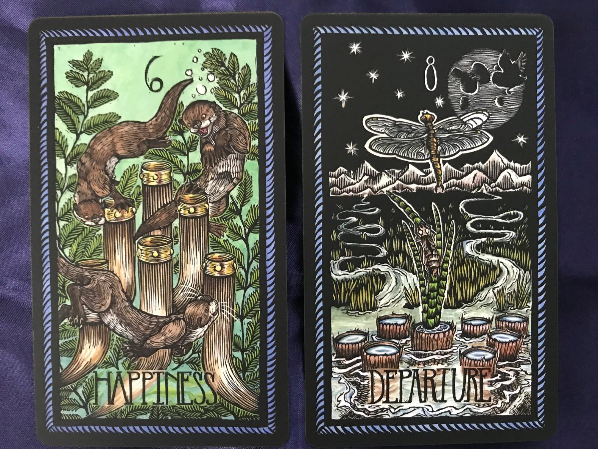 vulprix Posted June 13, 2021 Posted June 13, 2021 Thank you, @Bodhiseed 🌟 Joan Sutherland's words are fitting accompaniment. Today's draw is really continuing in the current theme--6 of Horns, Happiness and 8 of Horns, Departure. I have to share pictures again because the otters are so dang cute, and I also love every card which depicts a black night sky like in the 8.