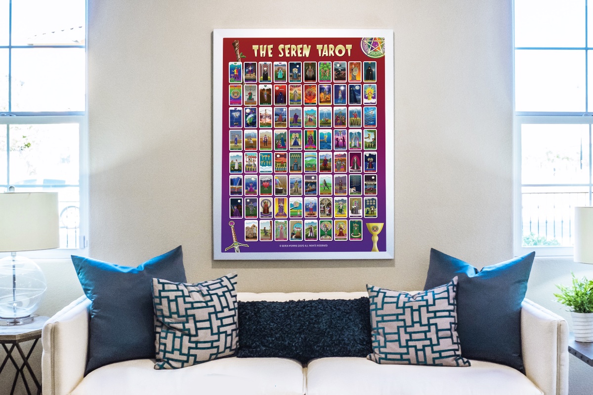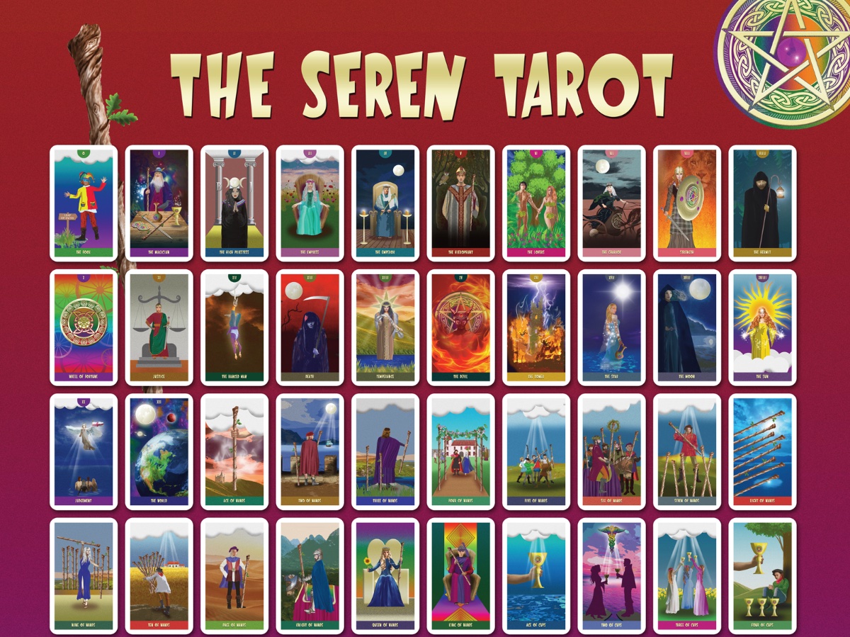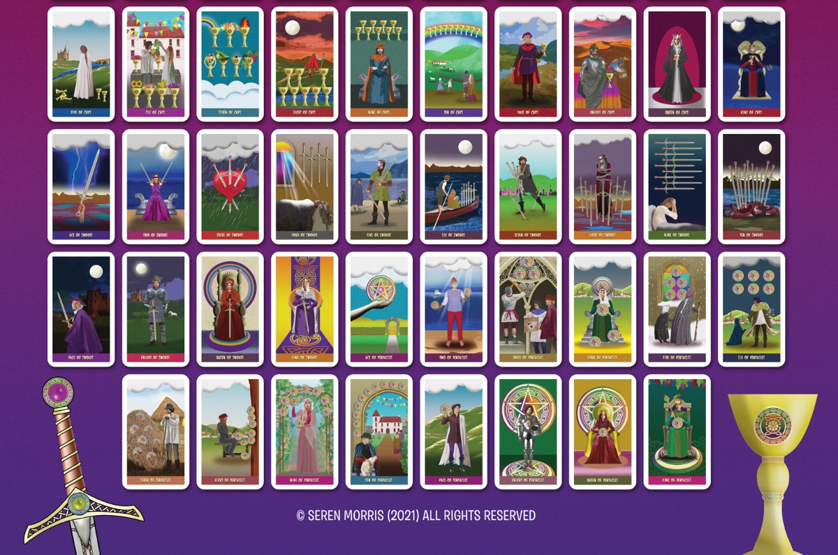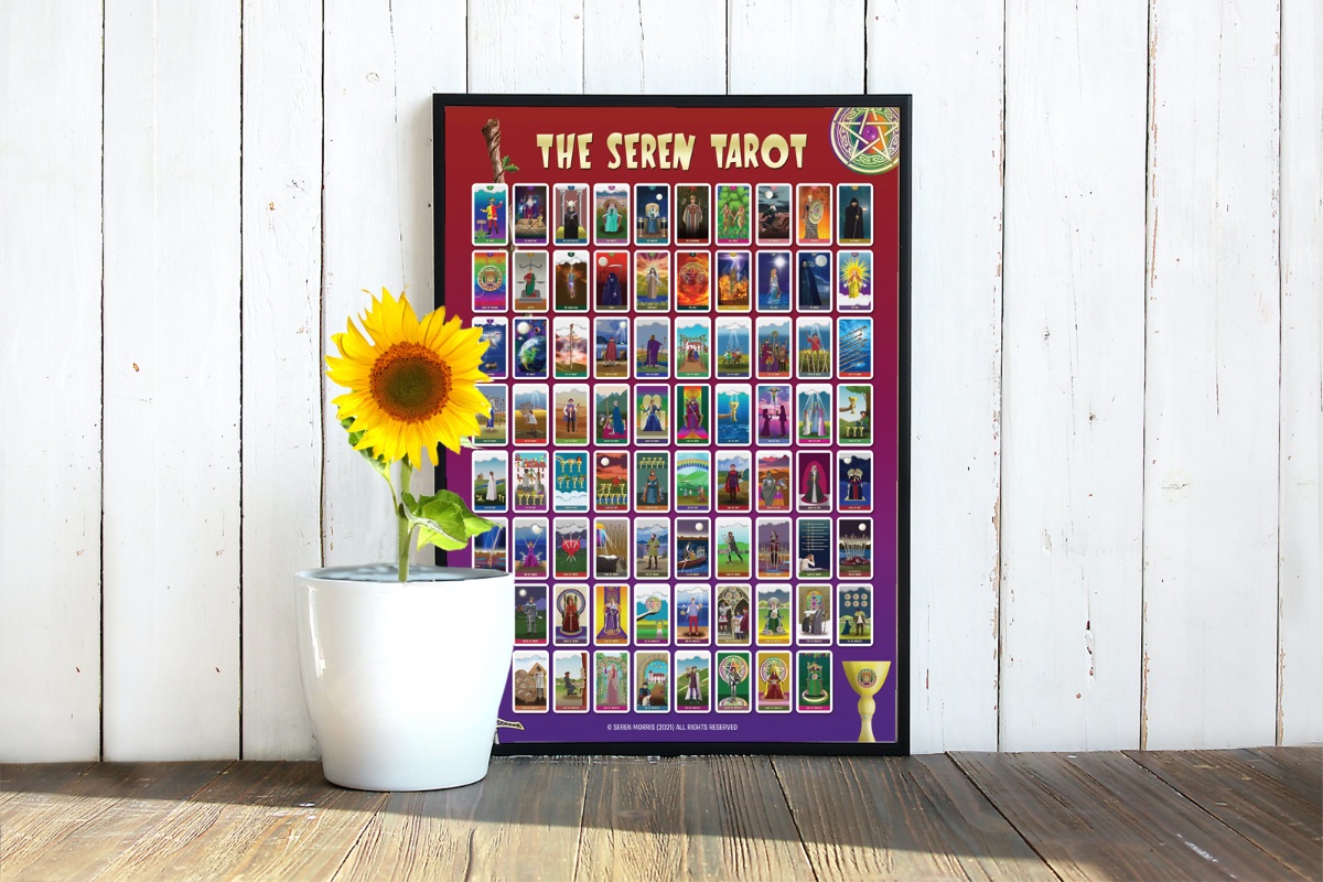 Seren Posted June 16, 2021 Posted June 16, 2021 (edited) Hi all, I signed up here a few months ago but haven't really posted much recently as I've been working on a tarot deck. Not for any reason other than I'm a freelance graphic designer and I wanted to try and create my own deck. Illustration is not my forte, and I have a very distinctive cartoony type style of drawing, but once I came to terms with that and accepted that any deck I created wasn't going to be a great work of art, then I started to make progress. After faffing around since the start of lockdown in March last year, I finally finished a few days ago! There are still a handful of cards I'm not entirely happy with, but I just came to the point I had to stop somewhere. My business has totally tanked since Covid and so working on this deck has been a Godsend - something to keep me occupied in the absence of paid work! No plans to publish it as a deck at the present time - it's more the sense of achievement of having actually completed 78 illustrations. As a cheap way of seeing them in print, I've created a huge A0 poster (just under 4ft x 3ft in size), on which the cards are printed at approximately the size they would be if printed as a deck. I'm not after approval or criticism. The whole concept of this deck was to keep it very light, accessible and non-Woo! The colours are bold, the fonts, the whole presentation and style of the thing is deliberate, and I do appreciate it may not be everyone's cup of tea. But I'm just happy to have finished and happy to share what I have done. Diolch x Seren Edited June 16, 2021 by Seren