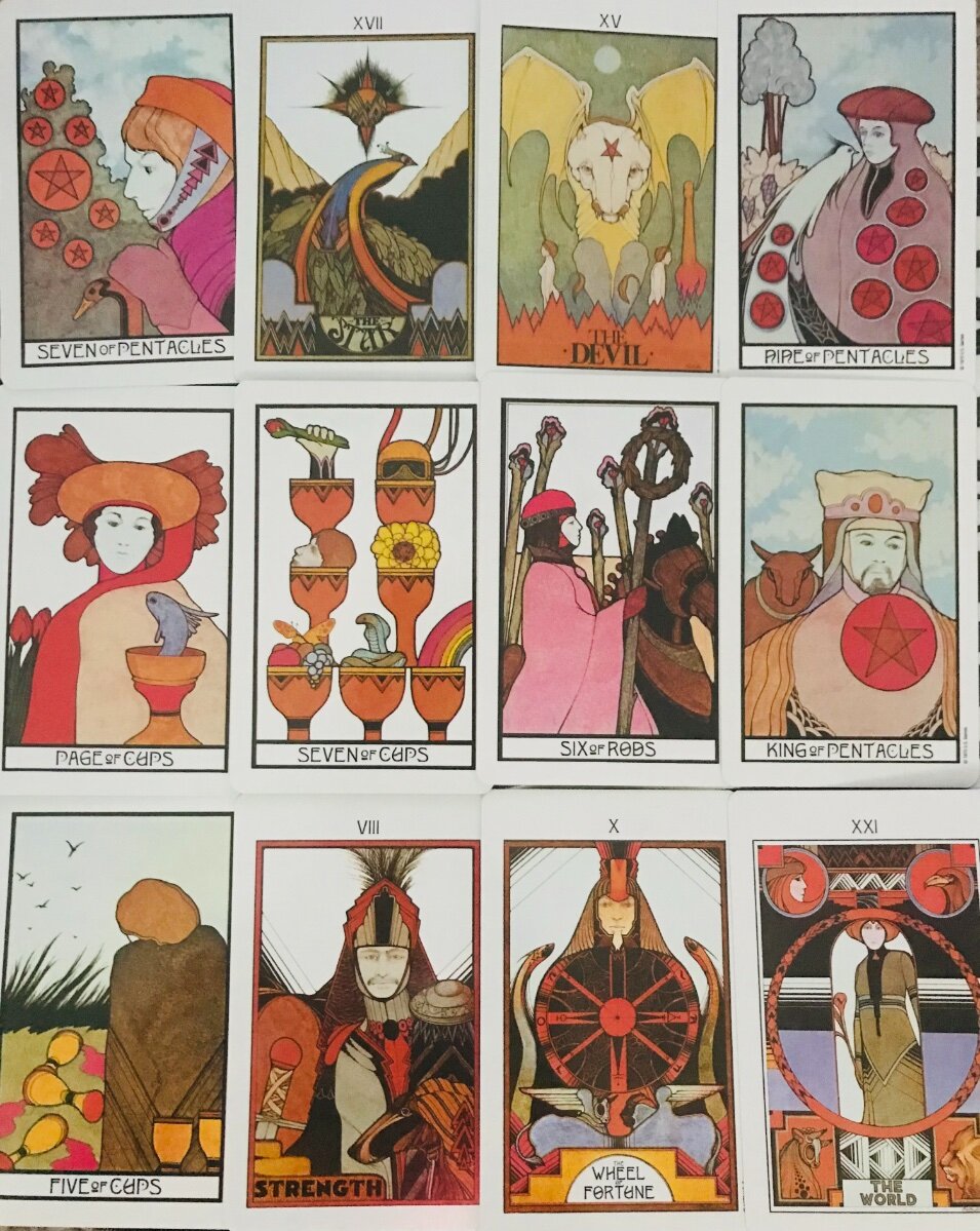 VGimlet Posted July 22, 2021 Author Posted July 22, 2021 (edited) Valentina tarot. Hm. I'm sure this was a popular comic in Europe, but I don't get it, and it wasn't my favorite deck, although it hasn't been awful to read with. Hm, ed. to add - a little too much unsuspected B & D in that 60's/70's way that makes me wrinkle my nose. Edited July 23, 2021 by VGimlet