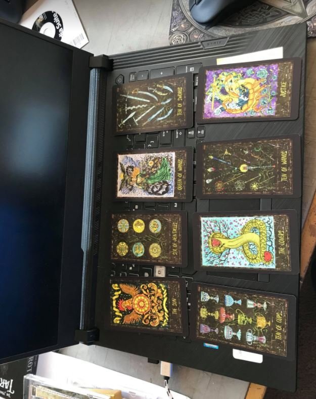 Nisaba Posted August 1, 2021 Posted August 1, 2021 The Magic Gate is good to shuffle, even though it's still got the Tarot equivalent of "the new car smell" (which in Tarot decks is not a smell). All the Majors are bright and quirky, and as unusual as the ones I initially described. I like that the pips are unillustrated, and I love that their symbols are different, is every sword on a sword card will be different, every cup on a cup card will be different. I pulled a few cards for myself, but I've always been a cow at reading for myself - it just can't be done - and in this post-covid world it's a long time between clients. I couldn't make head nor tail of the cards I pulled for myself, but that's par for the course. Ah well, sooner or later I'll have another client. 🙂
