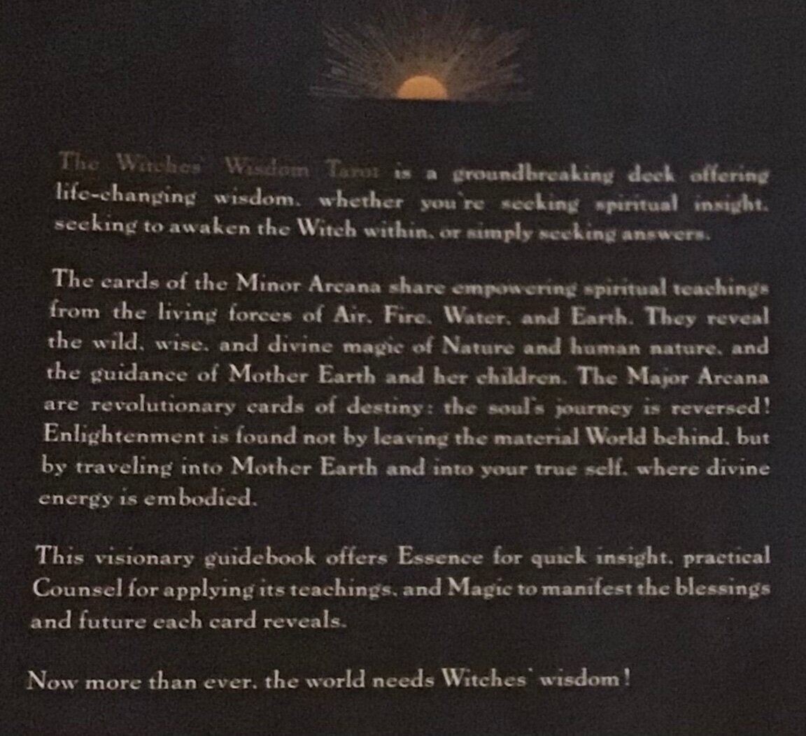 toj Posted August 8, 2021 Posted August 8, 2021 Working with the Witches Wisdom Tarot this week. Saw it in the store and liked the images but wasn’t sure about it. Amazon had a good price so ordered it there. I shuffled cards for several days before drawing my first cards from a fanned out deck. I pulled 3 major arcana cards and a 4th to clarify. They are fairly intuitive despite not feeling comfortable with them yet.