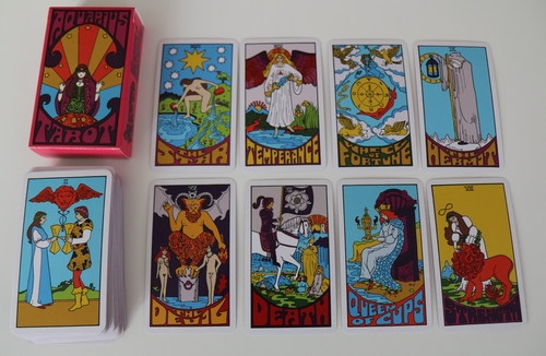 Raggydoll Posted February 7, 2018 Posted February 7, 2018 I finally received my Aquarius Tarot (by Dawn Aquarius, MercuryMagicians on Etsy)! This is the first edition that was limited to 100 copies. (There is a second and final edition available right now, limited to 50 copies). I haven't had much chance of using it yet, but so far I really like it! <3 (I have added some more pics here: https://www.thetarotforum.com/tarot-decks/aquarius-tarot-(psychedelic-hand-drawn-rws-clone)/msg19105/?topicseen#new)