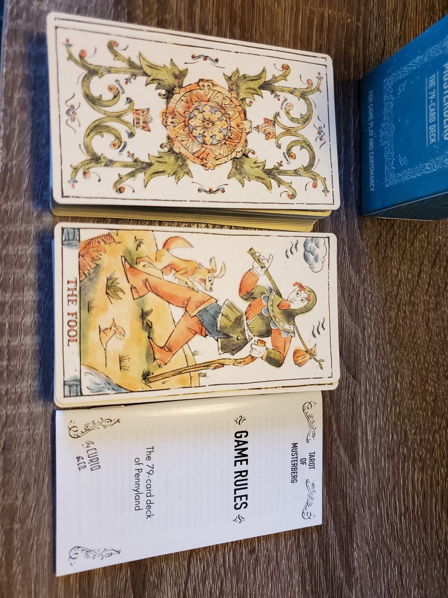 Danvers Posted September 21, 2019 Posted September 21, 2019 (edited) I just realised that I should have posted this on the unboxing thread - sorry. Please feel free to move it. I had a delivery of the Golden Visconti yesterday. No doubt everyone has seen it before but I didn't own any of the historical decks so thought I'd try this version as it was extremely inexpensive considering you get the deck, hardback book and cloth in a very nice box. Overall, a great deck for the price. I'm really pleased with the deck but it is huge, so shuffling is going to be fun. I think I'll be using this as a practice deck, just to ease myself back into reading again. Edited September 21, 2019 by Danvers Ooops