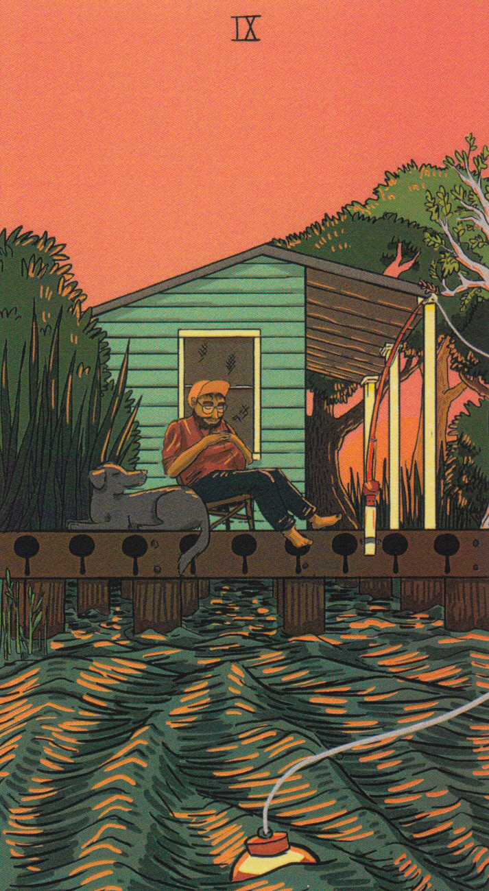 Bodhiseed Posted November 7, 2021 Posted November 7, 2021 This week I'll be using the Delta Enduring Tarot, created and self-published by Bridgette Egan. Along with it, I'll be drawing from the Southernisms Oracle (a deck I created based on sayings I grew up with). Today's draws are the Hermit and "Act like you've got some raisin':" Rather than alone on a mountain top, this fellow sits on a deck off his elevated house surrounded by flood waters. Wise to the rhythms of the Mississippi floodplain, this is one of many storms he's weathered. He relaxes while waiting on a nibble from a fish, knowing that eventually the waters will recede. The Hermit relishes these times alone for self-reflection; the lack of busyness allows him to check and see whether he's following his own principles and values or just talking about them. If needed, he can change his thoughts and behavior and get back on course. "Act like you’ve got some raisin’ doesn’t have anything to do with a dried grape, but rather is a strong warning to be polite and use good manners. There is a time for solitary contemplation and a time for reaching out to help others. There's nothing spiritual about self-absorption. The universe of his own feelings keeps crowding everyone else's out. ― Garth R. Hallberg