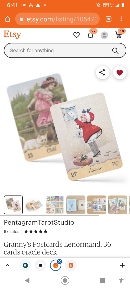 Aeona Posted December 28, 2021 Posted December 28, 2021 @Pretzel https://www.etsy.com/listing/1054701416/grannys-postcards-lenormand-36-cards?ref=user_profile&frs=1