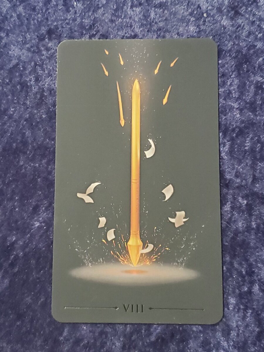Wyrdkiss Posted February 10, 2022 Posted February 10, 2022 I adore this True Black. It is minimal, yet effective imagery. The cards are so thick they are a bit bulky to shuffle, but I manage. I drew a pull about work and the 8 of wands came up -- a favorite of mine in many packs. It can be hard to tell the difference between the sword and wand suites at times in this deck. Image enclosed. And yes, work was incredibly rapid pace today, but I kept up with it as prescribed.