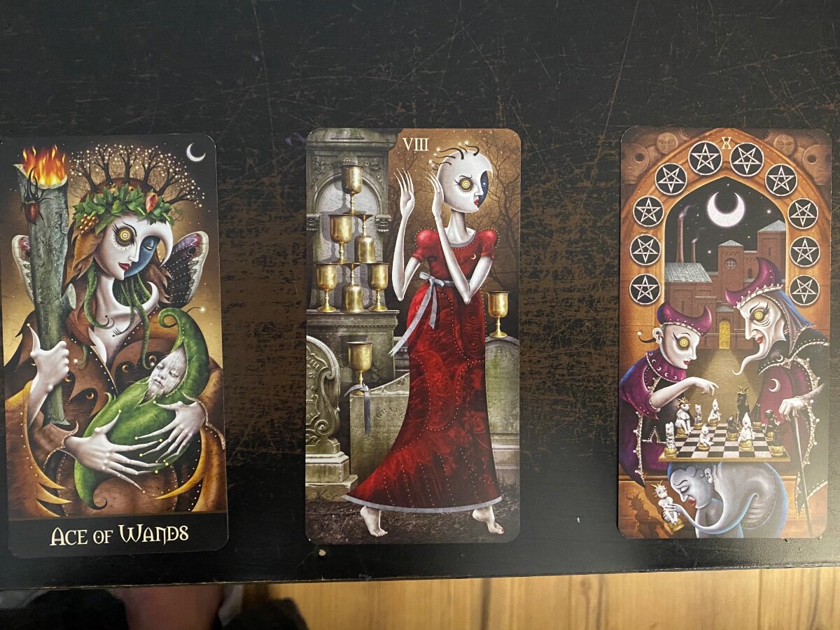 sweeneyish Posted March 4, 2022 Posted March 4, 2022 Count me in - Going dark with the Deviant Moon Tarot this week. I’d love to see these mystical martians, @VGimlet! My Deviant spread this morning: