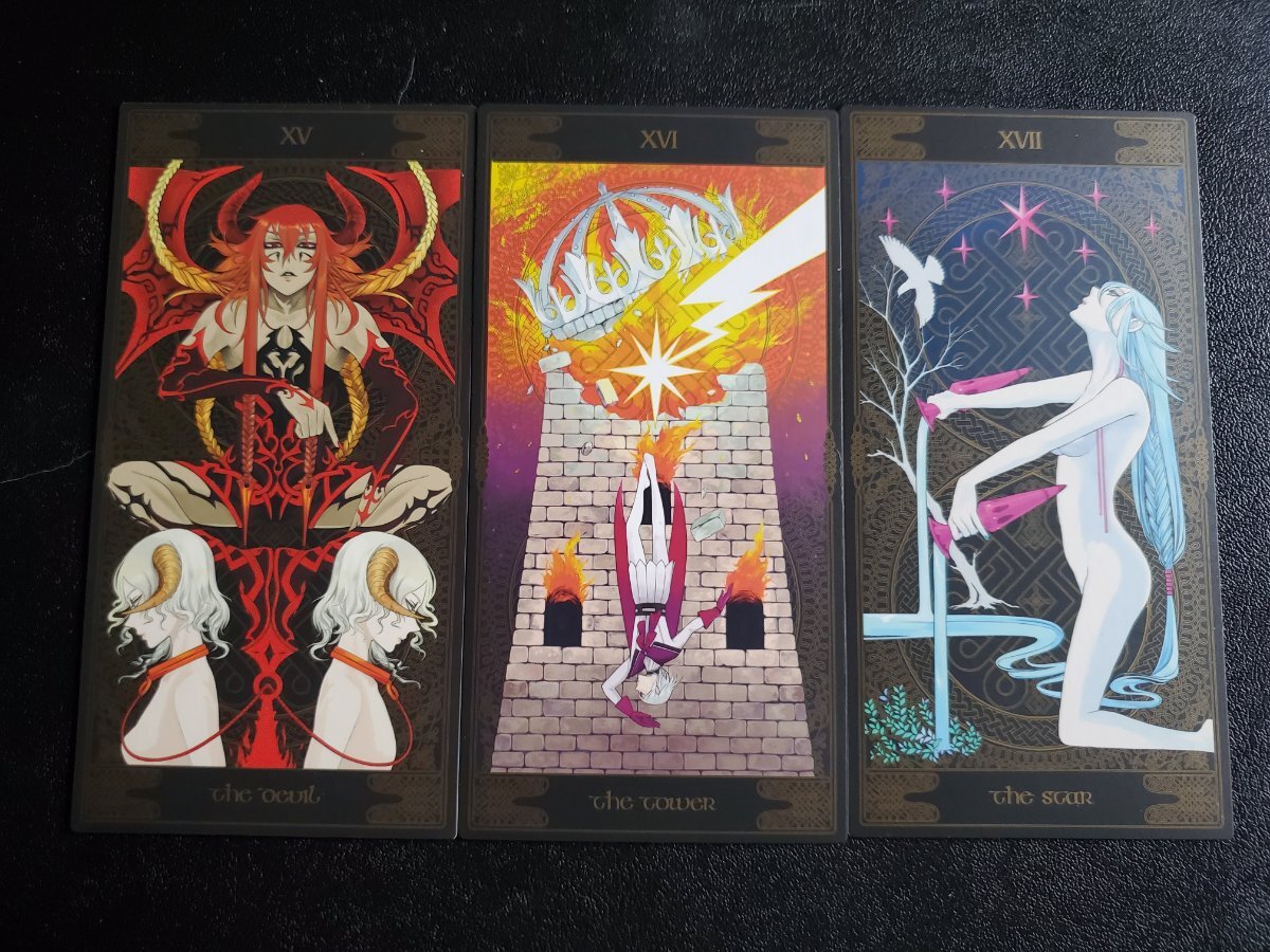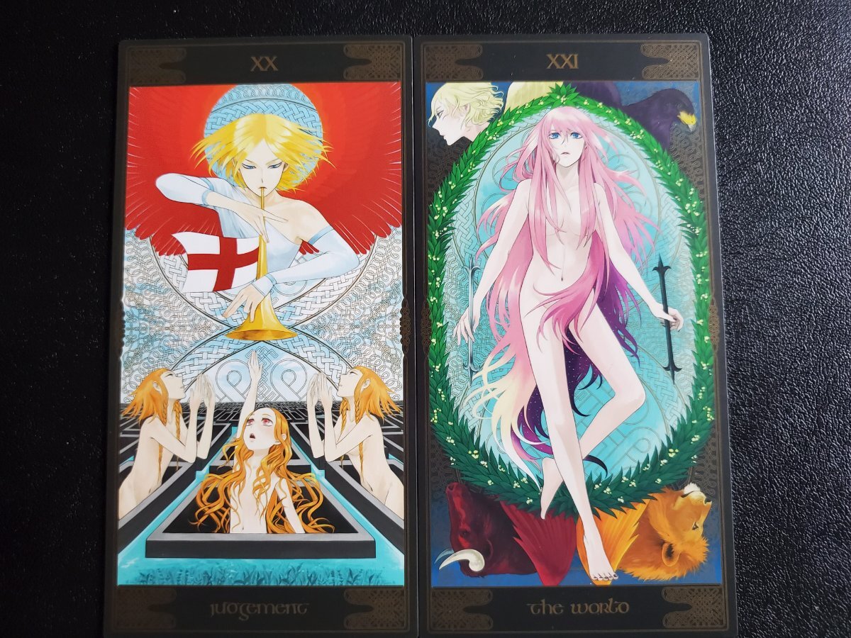 Maxpphire Posted March 13, 2022 Posted March 13, 2022 Maya Takamura is one of my favorite artists and she did two Decks, sort of. One deck, Zektbach, is only 10 specific cards. It's based after a story that came about on a series of music videos that she drew. Some of the characters on the cards don't actually show up in the videos, but rather appear in the lore of that particular story. The videos are linked in order below. They are roughly about 2 minutes long each and the music that accompanies the videos is quite beautiful imo. Apocalypse ~Dirge of Swans~ Blind Justice ~Torn Souls, Hurt Faith~ Ristaccia Turii ~Panta Rhei~ Raison d'être ~交差する宿命~ Zeta ~素数の世界と超越者~ 蛇神 The second deck is only a Major Arcana deck, which makes me sad because her art is so beautiful, I would love a full 78 card deck with her art to actually read with, but I know what an undertaking that can be. You can tell by the box that it's made to collect, to display. The cards are equally as beautiful and comes with some bonuses. A cover card, a postscript card, and a card of all the characters drawn cutely. The postscript is in Japanese so I unfortunately cannot read it Then on the back of the postscript card is the general product information, the back of the other two cards are the same, and the back of the rest of the cards as well. The cards themselves are also very beautiful. My favorite in this deck is The Star. Please enjoy the photos of both decks, and the art of one of my favorite artists.