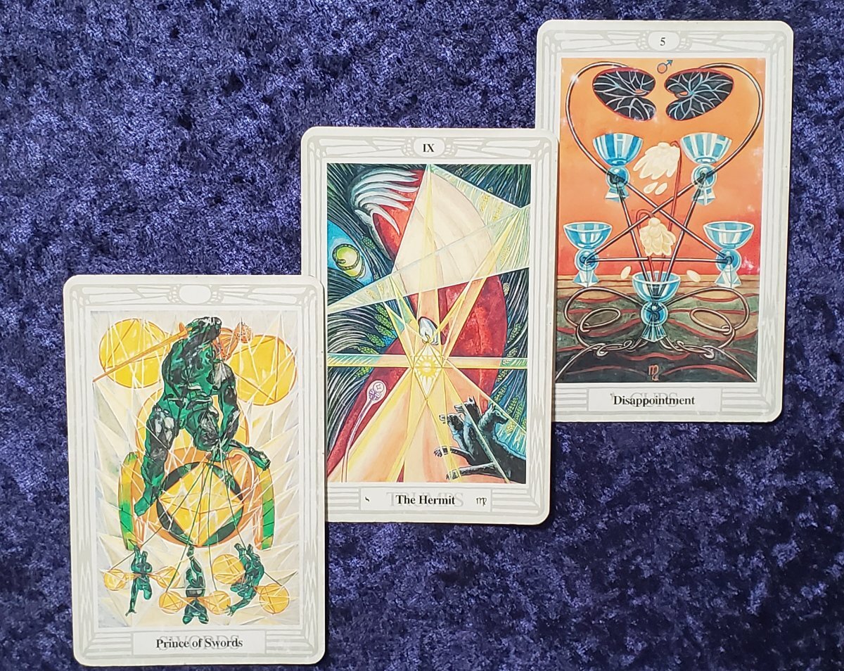 Wyrdkiss Posted May 3, 2022 Posted May 3, 2022 1 hour ago, Wyrdkiss said: A friend posted this exercise. I like the concept. My cards were 5 of cups ( behind) and prince of sword in front. My deck is the Thoth this week. Interpretation soon. Ok, how weird is this -- I unconsciously looked for the Hermit instead...
