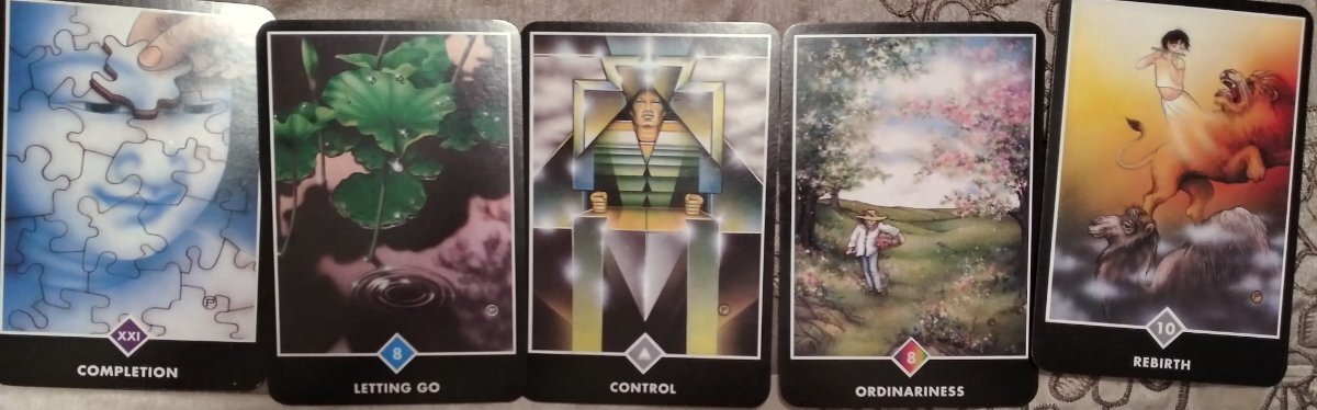 AnomalyTempest Posted May 9, 2022 Posted May 9, 2022 @Page of Ghosts You are right about the difference between the second coat and the first. I will definitely make sure I do them all like that from now on. @AJ-ish/Sharyn Wow what a long time. Also, 325 cards is like 4 decks. 🤯 Good luck on your journey and come back for a visit sometime. 😄 My weekly spread: 1, What to prioritize this week? Completion (The World) Might be time to move on. Mom has her next Doctor's appt on Friday and she is hoping they will let her drive again. I was thinking it might be time to see how she manages to get her walker in and out of her car. Final little pieces put together to make sure she will be okay on her own. Might visit my friend's lake house for a few days because she's closer to mom than I am so I will be close in case she needs me. 2. How can I better organize my time? Letting Go (8 of Cups) Well here we seem to have conformation of the previous card. Start stepping back and letting mom do more for herself. 3. A way to be productive without feeling overwhelmed. Control (King of Swords) Don't let myself get to boxed in by my routine. It is there to serve me, not be my master. It's okay to do things out of order or even skip them sometimes. 4. How can I incorporate what I love? Ordinariness (8 of Pentacles) Remember every task is sacred. Another saying I picked up somewhere: Never despise any task, however small, because in doing anything you are either creating something or bettering it. Also, if you love what you do, you'll never work a day in your life. 😄 5. Something new can try to increase self care. Rebirth (10 Swords) Another Lion. I need to let my inner child out. Don't be afraid to be me.