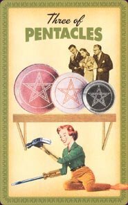 euripides Posted June 8, 2022 Posted June 8, 2022 12 hours ago, Page of Ghosts said: I'm having a similar issue to you - I think the Dreaming Way might be one of those decks where I really like the art but I'm not so sure if I actually like it as a tarot deck. I hardly ever use it but I can't being myself to remove it from my collection either. Sigh. Will at least remember to do my daily draw today, maybe do more cards than one to get a better feel for it overall. I think some decks, like the standard RWS, are pretty much 'never fail' and universal. Themed decks and those with a strong aesthetic direction need to really be aligned with some aspects of mood/concerns/worldview or whatever is salient, at least to some extent, to really work. The funny thing with the salesman is that I did have a salesman come to the house in the last couple of days! Today's card is the Three of Pentacles. A very odd image, with a rather surrealist housewife with prosthetic hammer and screwdriver hands, putting up a shelf to display her Melmac plates while watched by the neighbors. "You've hammered out the details ... now it's time to discuss the next phase of development and enjoy the praise and recognition you deserve." The 'keep doing what you're doing' vibe of the Three of Pents doesn't really gel with my current mindset of 'who am I, how did I get here, where the hell am I going'. But at the same time, I think the urge to jump ship is not all that rational. More information: Moon. Listen to your instincts. It's funny, I've been thinking a lot that I need to be able to really step back to be able to get a clear picture of what I want to do. It's hard to see the road ahead when your nose is on the grindstone. Instincts can be hard to hear, especially these days when media feeds our fantasies.