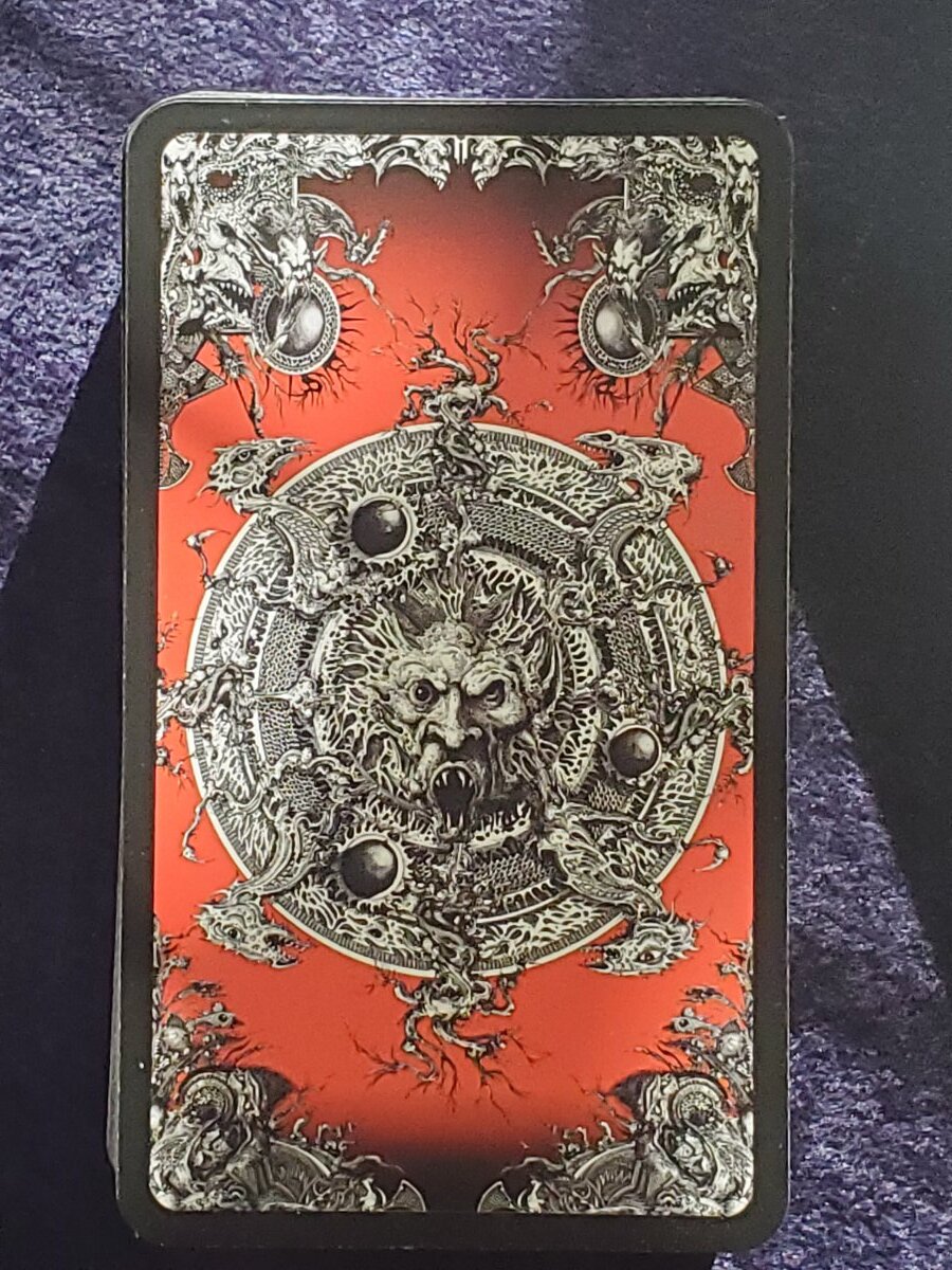 Wyrdkiss Posted June 16, 2022 Posted June 16, 2022 On 6/14/2022 at 5:31 AM, Bodhiseed said: From the Tarot of the Secret Forest, the Devil; from the Faeries' Oracle, the Pook: It's hell season (summer) here, so I can very much relate to this card. Temperatures are at 99 F, but expected to climb to 103-105 F next week. We've had no rain in quite a while, but hordes of mosquitoes will find any bare flesh to bite and the swarms of gnats attempt to get in your eyes, nose and mouth to find moisture. These insects are a good symbol of the Devil, that part of us that feeds on what we think will help us but can hurt us in the long run. The Pook is a shapeshifter who helps others see the bad in the good and the good in the bad. He advocates for balance in our perceptions. As John Milton points out, "The mind is its own place, and in itself can make a heaven of Hell, a hell of Heaven." I can't get rid of the bugs outside, but I can work on those in my head. There is much more to focus on: the zinnias, salvia and coneflowers are blooming, and three varieties of woodpeckers are back at the feeders. But I might watch and enjoy from my screened-in back porch! I love the tarot of the secret forest. Covered it here once I believe. I've been incognito this week sadly. I have not even caught up with the discussion. Yet I desired to add one or two pics of my interesting deck. It is from a famous artist named Ian Miller, who has done work for Tolkien books, and a lot for the Warhammer universe. Are any of you familiar? Here's the box and back . More later.