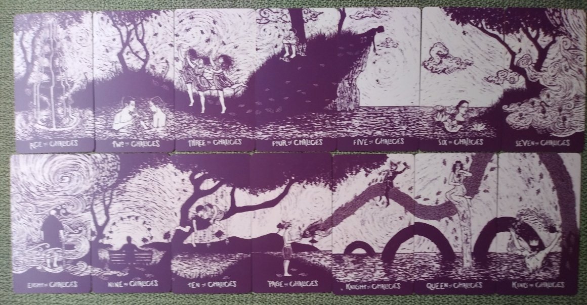 Rachelcat Posted July 9, 2022 Posted July 9, 2022 9 hours ago, Bodhiseed said: Happy Weekend DoWers! Thank you for the new thread, fire cat pickles. ❤️ I'm in this week with the Prisma Visions Tarot paired with the Language of Color Cards. Prisma Visions for me too! The mini version, along with the Light Visions! We will definitely need to compare notes! I’ll be using Little Prisma Visions Tarot and Little Light Visions this week. They’re the rest of the Triple Little Visions set by James R. Eads. I’m doing them together because they’re the same illustrations, one with vibrant color (and silver edges), one in muted purple and white (with gold edges). (I never mentioned, Cosma Visions has shiny black edges.) Because they’re minis, and because of the illustration style, I think they’ll clarify each other if there are items that are hard for me to see. These decks have panorama suits, like Cosma Visions, but with the panoramas including the courts. They have fewer birds than Cosma Visions, but some very large and scary birds! We’ll see how I handle them if they come up this week. Enough from me. On to the interview! Most important characteristic: Two of Swords I’ll either love it or hate it. Or I’ll have to choose either the color or monotone. Interesting that the illustrations are not exactly the same. Very, very much the same, but I can see minor differences when not that they’re side by side. Strength: Four of Swords The decks are a refreshing (wintry!) break from very RWS and very individual interpretations. They’re both! Weakness: Two of Chalices Same as the Two of Swords, you can’t like both? Or it’s not good for relationship readings? What I can learn from decks: Ten of Chalices This is a pair that the monochrome is easier to see, specifically the children in the tree and the glasses they hung up for wind chimes. I can learn that readings about relationships are about more than romantic relationships. Emotion and creativity and companionship all work together. How can I learn it? Ten of Pentacles In the context of family. And abundance. Money can’t buy love or happiness but it can make them easier to fine. Outcome of our work together: Six of Swords A bridge of swords. The decks will lead me to cross over to new ideas and concepts. Well, I struggled with this reading. Hopefully, I’ll do better this week. Observations: Swords have butterflies on them. The seasons work for me; it looks like they’re fixed signs: spring for pentacles (Taurus), summer for wands (Leo). autumn for cups (Scorpio), winter for swords (Aquarius). (I get so indignant when there’s a confused mix of seasons for suits, like many witchy decks.) See you tomorrow!