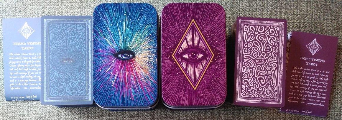 vulprix Posted July 10, 2022 Posted July 10, 2022 6 hours ago, Rachelcat said: Prisma Visions for me too! The mini version, along with the Light Visions! We will definitely need to compare notes! I’ll be using Little Prisma Visions Tarot and Little Light Visions this week. They’re the rest of the Triple Little Visions set by James R. Eads. I’m doing them together because they’re the same illustrations, one with vibrant color (and silver edges), one in muted purple and white (with gold edges). (I never mentioned, Cosma Visions has shiny black edges.) Because they’re minis, and because of the illustration style, I think they’ll clarify each other if there are items that are hard for me to see. These decks have panorama suits, like Cosma Visions, but with the panoramas including the courts. They have fewer birds than Cosma Visions, but some very large and scary birds! We’ll see how I handle them if they come up this week. Enough from me. On to the interview! […] The seasons work for me; it looks like they’re fixed signs: spring for pentacles (Taurus), summer for wands (Leo). autumn for cups (Scorpio), winter for swords (Aquarius). (I get so indignant when there’s a confused mix of seasons for suits, like many witchy decks.) See you tomorrow! Rachelcat, I am utterly disappointed in myself that I have never in my years put these seasonal correspondences together 🙈 Oh my gosh. Maybe because so many decks just ignore distinctive four seasons altogether? Thank you very much for this!! I also have never had the inkling to get the Light Visions or Prisma Visions for myself but SO LOVE seeing them in use. This will be a treat of a week. And thank you @fire cat pickles for the warm welcome once again, I am glad to be here 🙂