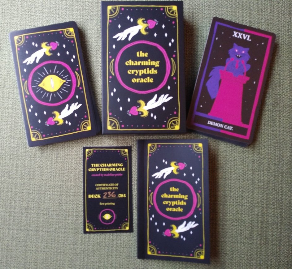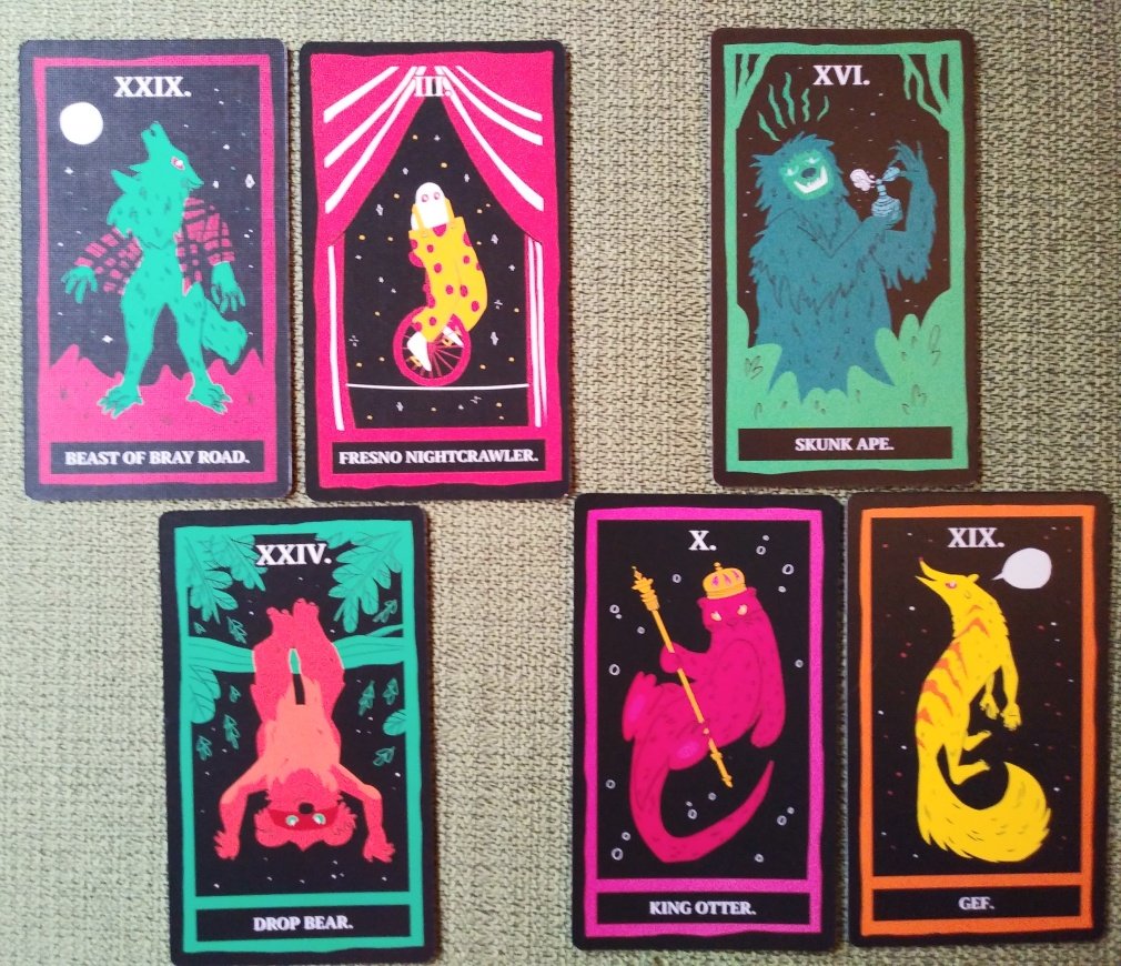 Rachelcat Posted July 16, 2022 Posted July 16, 2022 Hi! Looks like we have a great group and decks this week! I had the Jolanda long ago. I love its vibe! In the meantime: It’s here! The Kickstarter deck I backed, the Charming Cryptids Oracle has finally arrived! So I’m going to have fun this week! It’s a 50-card oracle, with a 0 card, the rest roman-numeraled. The artwork is clever, colorful, and fun. The cryptids are mostly North American, with a number from other places, including the Loch Ness Monster, the Kraken, and the Tizzie-Whizie. I was surprised to find two from my area, the Demon Cat from DC (get it? DC?) and the Snallygaster from Frederick, Maryland. I had heard about the snallygaster when I was a kid, but I didn’t know it was a local thing. There are also several cat-like creatures, so I’m in for that! I like that, although the booklet was an add-on, it fits neatly in the box with the cards. The booklet has three upright and three reversed keywords for each card, along with a description that includes possible origins or sightings of the beasts. It also has brief instructions and some spreads. So let the interview begin! Most important characteristic: Drop Bear An Australian predator resembling a large koala that drops onto its victims from above. Keywords: surprise, hidden truth, detachment Well, the deck will be surprising and may stun us with its hidden truth! Strength: Fresno Nightcrawler A possible ET that is mostly legs, first sighted in the 1990s. Keywords: balance, success, clarity Even though this is a humorous deck, it can give real, clear readings? Weakness: Beast of Bray Road A humanoid bear-wolf sighted in Wisconsin in the 1930s and 1980s. Keywords: reluctance, obstacles, defensiveness While the deck can be clear, it can also be difficult to read with because it’s so unfamiliar. To everyone. What can I learn from the deck? Gef A mongoose with human hands and feet that inhabited a home on the Isle of Man. It was very talkative. Keywords: disagreement, conflict, confidence I can learn confidence from the deck! How can I learn it? King Otter Giant carnivorous giant otter in Ireland that live in pairs that defend each other. Keywords: partnership, affection, connection with others I can learn confidence by being open to partnering, with the deck or with other people. Outcome of our work together: Skunk Ape A smelly bigfoot cousin who lives in Florida. Keywords: unhealthy behavior, disdain, pride After reading with it for a week, I’ll think the deck is too silly to read with anymore? Well, I guess we'll see about that!