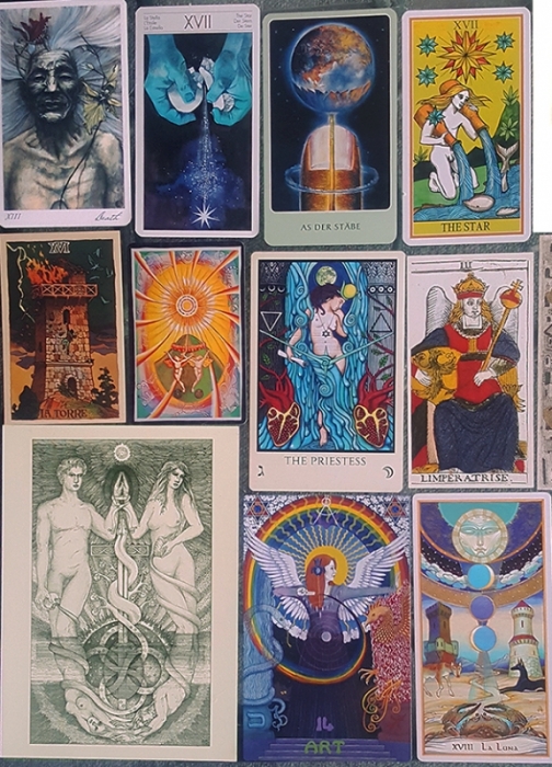 Carojulie Posted January 14, 2018 Posted January 14, 2018 Hello ! When I saw the title of the thread and read all the other posts (which was fun ! thank you for sharing ! :) ) ; I almost jumped on my keyboard to type the names of all my Baba decks. But then, mentioning Baba decks in a thread about the most beautiful decks is almost like cheating, isn't it ? I thought some other beautiful decks deserved a chance also, lol ! So here are a few of the most beautiful decks (IMO) that I am lucky enough to have (the names of the decks shown in the pictures are in this order : center, bottom, left, up, right) : - Distant Past tarot - Steampunk tarot (Charissa Drengsen) - Stella's tarot - Soprafino - Hardy tarot - Touchstone tarot - Artist Inner Vision tarot - Wild Unknown tarot - Oriental tarot - Japaridze tarot And I think that in a next post, I will post some of my Baba decks (because, how can I not ? lol ! ) Happy new year everyone ! :)