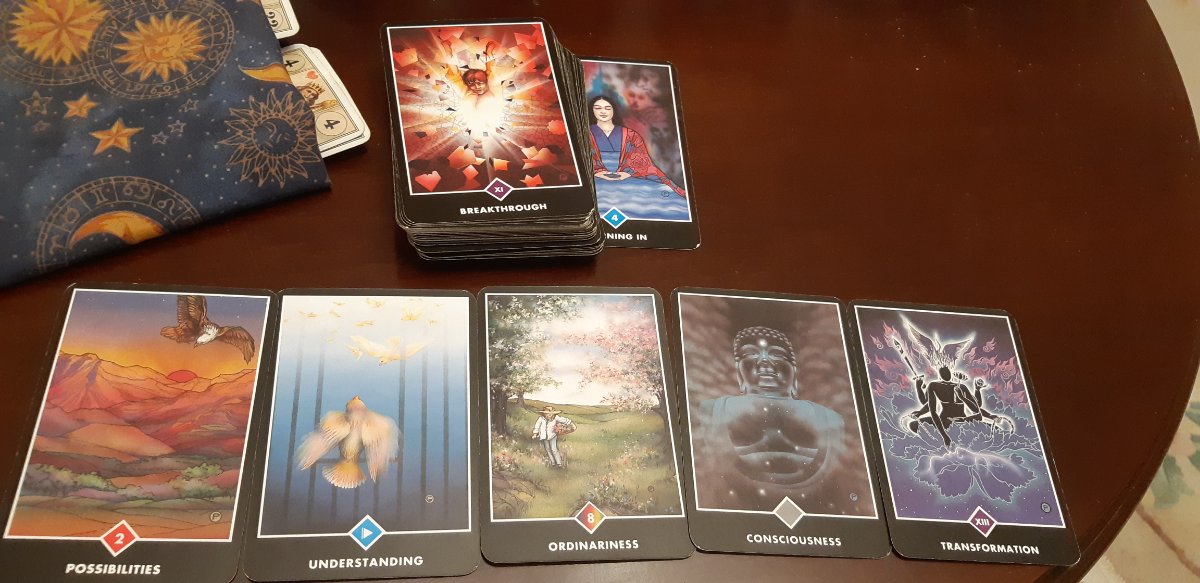 happysquirrel Posted July 30, 2022 Posted July 30, 2022 It's already July 30th over here 😉 General reading with Osho Zen Base / Shadow Breakthrough ( XI) / Turning in ( 4 Cups) First two cards feature birds, one is a mighty free eagle, the other is little bird in the ( open) cage... ( 2 Wands vs Page Cups) Ordinariness / 8 Pentacles in this deck to me reminds of: before Enlightenment - chop wood, carry water; after Enlightenment- chop wood, carry water... Presumably, it's the Consciousness ( Ace of Swords) that makes all the difference. At the end - Transformation ( Death XIII) In this deck, the image represents the Fenix raising... Let's hope so 🙏