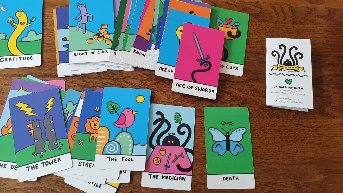 Niobium Posted August 3, 2022 Posted August 3, 2022 A KS deck I didn't notice, which has a very spare, monsters and beings theme, is available for purchase from the artist's site: https://www.sarakathleen.co.uk/product-page/everybody-s-tarot Very high contrast, RWS-themed, includes a booster pack of 20 additional cards which are oracle-type. This is a super cute deck, I think I'll be grabbing a copy. In the UK, too!