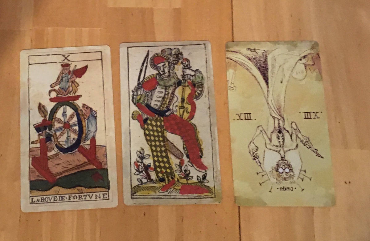 Agnes Posted August 21, 2022 Posted August 21, 2022 Day two with the Alleyman’s tarot. Big question for today has been “can I read with it?” So I’ve just been doing practice readings using spreads in the accompanying book, asking for a coherent story. It has been working although it’s slow going because I have to look up almost every card. I may try doing a bunch of three card combos without any follow up. Here’s a three cards as “current event”; I read it as “Wearing masks out of habit but things are changing and you are destructively clinging to something that died long ago.” Then the Fork in the Road elaboration on that situation. Central situation is the performer's mask — being the King of Pentacles, the provider while ignoring distress for fear of being overwhelmed. Two paths: the first is to stay in this role that is killing you to provide for the next generation. This appeals to you because you recognize the story, this is how things go. But you aren’t participating, you’re just reading the story. Choice two : leave this role that has taken over everything. It has changed since you started but you feel obligated to continue. You aren’t! This pulls you because you are so lonely behind the mask. But you are afraid to throw it away. Quote