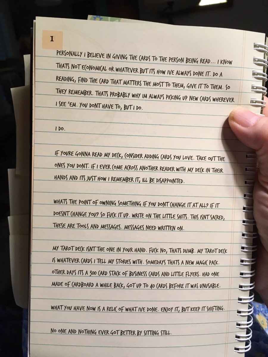 Agnes Posted August 21, 2022 Posted August 21, 2022 This is the frame story for the sprawling Alleyman’s deck (including the reason for source and contact info for every card). This is one of the things that appealed to me the most — it is pretty much exactly not how I approach tarot as you may have noticed. Even a mismatched deck with carefully chosen cards would be much more up my alley (sorry but I’ll probably use this phrase more than once this week) than one that changes. In the spirit of this second page I am swapping some of the cards into spots where I think they work better, and making a list of ones that just don’t appeal to me. Not sure if I’ll audition substitutes from my other decks or cast a broader net.