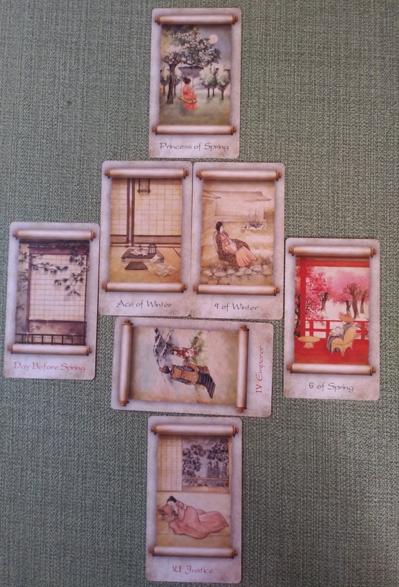 Rachelcat Posted August 26, 2022 Posted August 26, 2022 Wow, such insightful and beautiful readings this week! I enjoyed going through them just now. I’ve been missing this past week, a combination of family emergency and crazy work. I’ll be back for next week with an easy-to-use deck. In the meantime, I’ll finish up with Tarot of Japanese Poetry. Let’s see how it works with the old-fashioned first part of the Celtic cross. No question or topic, covering card will be the issue. Winter turning to spring! With two majors. This is me: Ace of Winter Through the cracks in the door The winter whirlwind whistled Sharp as a spear Very wintery and swordsy, as it should be. And the illustration shows papers on a desk being blown around, so airy, too. I’m someone who’s most happy when I’m learning something, so I can easily identify with the winter of this deck. But the ace makes me think I’m also looking around for, or am about to find, a new understanding. This covers me: 4 of Winter Oh goddess Medusa Give me a look So I can enter an eternal sleep Until his return This is the issue. Yes, even though I’m usually a learning machine, I’ve been intellectually stuck for a while now. I don’t want to sleep much longer. This crosses me: Emperor This poem is too long, so only a few lines here: The country of Yamato that the gods saw from heaven I rule and I dominate I am the king and everything is subject to me I’m depending too much on authority in my learning. I need to free my mind a bit and understand things in my own way. This crowns me: Princess of Spring Pears in bloom Under the moonlight A girl reads a letter Winter turns to spring, but still includes reading. But I have a feeling this reading is more personal than intellectual! My goal is to enjoy and be at peace with I learn, not that it makes me upset or confrontational. This is beneath me: Justice I am exhausted with resentment I am not afraid that my sleeves Decay with tears I am sorry for my good name Rumors will destroy Well, that’s kind of dark for Justice! The poor woman is a victim of a whispered slander campaign, and wants only for people to know the truth. I’m able to determine the difference between truth and lies. And fantasy. This is behind me: Day Before Spring A hut door in the mountains Overshadowed by branches of pine trees Those that do not know spring. An intermittent chain or drops The melted snow is dripping away I’ve already experienced the end of winter. Now it’s time to turn to full spring. From intellectual understanding to emotional understanding. This is before me: 6 of Spring Cherries, cherry blossoms are blooming And about these old trees People sang once There are two poems for this card, both about nostalgia. I will soon totally come out of winter into a spring of enjoyment and beauty and also understanding. The things that I’ve learned that upset me will be change into understanding that calms me. Ok, a little nebulous. Well, not really. I understand the reading pretty well, it’s just hard to explain in words! Plus I enjoyed the poems! See you tomorrow for a brand new week!