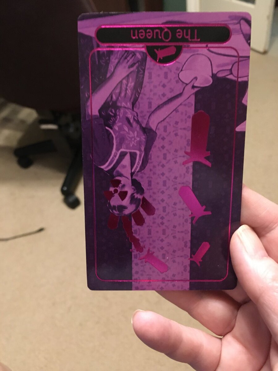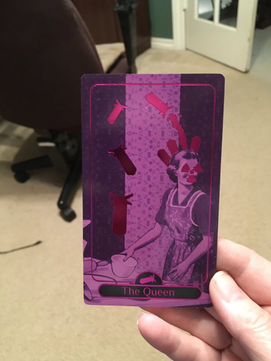 Agnes Posted August 25, 2022 Posted August 25, 2022 Alleyman's Tarot, day 6 I've been doing longer readings, to see if this deck is coherent for me. I know that some people have chosen to pull a 78 card standard deck out of it and just use that, but I don't really see the point; a lot of the most interesting concepts are in the Other Arcana and the extra suit, etc. So if I want to keep working with it, I have to figure out how to work with the whole deck. The problem with longer readings is that then I end up doing readings on things I don't really want to talk about in public. But maybe I can find useful examples that I am willing to share. This is a spread from the handbook -- 7DA calls it "highs and lows." It's Past, Present, Future, but with two cards in each section -- the high point and low point of each time slot. What I think is interesting is that both Magicians showed up, a reversed on in the Present Low and and upright one in the Future Highs. That seems like an interesting way for this deck to talk about getting control of personal power, and a benefit to having two versions of the same Major. Here's one that at first glance looked quite unreadable to me. But when I sat down with the handbook and worked through it, it really came out quite cohesively and coherently. I've been reading this book a lot over the last week and so it makes sense to me that my sub/unconscious has incorporated the meanings more than my conscious intellect has. Despite this reading giving me a pretty clear answer, I asked for an advice card because I didn't really like the answer I was seeing. My request was something along the lines of "should I really leave my family and [go do this thing I don't really want to do]" and the response was the Queen of Bombs reversed. The Queen of Bombs is a very interesting concept to me -- the mother of the 1950s nuclear family who is devoted to her family but maybe not in a healthy way, who protects them from harm and from the knowledge of the harm that's out there (which means they won't take any steps to deal with it), and who will attack anything she sees as a threat to this family (including perhaps the ways in which the individuals in her family deviate from the image she has of the Perfect Family). This sort of concept is one of the things I really like about this deck -- how would you come up with this in a standard 78 card deck? Would you just have this as a possible interpretation of one of the queens, perhaps reversed and in conjunction with other cards? The Queen of Bombs is of course not in Renee's book on using tarot for practical advice, but in general she advocates seeing court cards as a way to be/act, and reversals of them as a suggestion to not act that way. So to me this says, don't be this controlling obsessive mother who makes things worse because she has to Make Things Perfect -- and don't use my family as my excuse. Here she is right side up, because I like this card. So tomorrow is Conclusion Day but I am definitely getting readable spreads out of this deck.