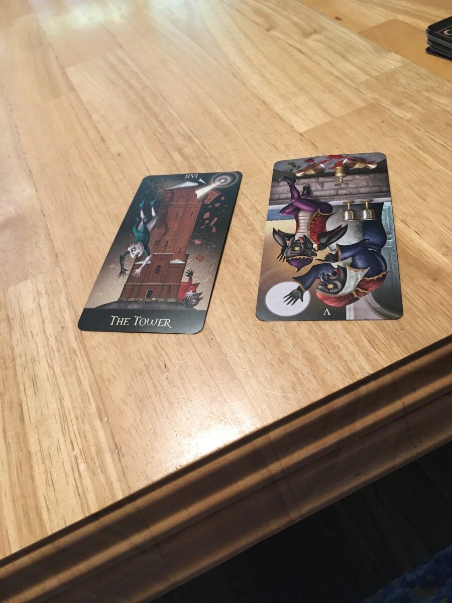 Agnes Posted August 30, 2022 Posted August 30, 2022 Deviant Moon day four Once again I asked for situation / advice for myself, and drew the Tower and 5 of cups, reversed. (No cropping today, apparently) Because I just drew the Tower yesterday in reference to my father, I felt this was connected to him as well. Valenza's version of the 5 of cups is quite different. He sees it as specifically relationship oriented -- a disrupted and disfunctional one, with both parties at fault. The two upright cups mean there's still potential here; both parties could take steps to repair the situation. "The wall between them is low." He doesn't say this, but the two standing cups made me think of the two of cups. Something that started well is not in good shape now. This is quite intriguing. He says the reversed card means the relationship is ruptured beyond repair. To me today these cards point out that my elderly father is going to die at some point and after that catastrophic event I will not be able to repair our relationship. It's not as bad as the couple on the 5 of cups but it is strained. I could take steps to make it better. But if I wait too long, I won't be able to. A sobering thought, but a good reminder.