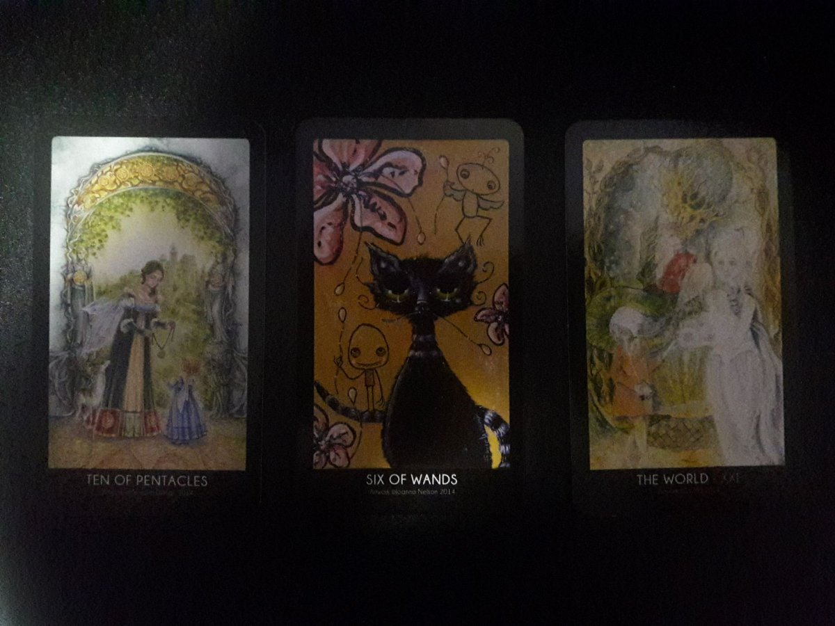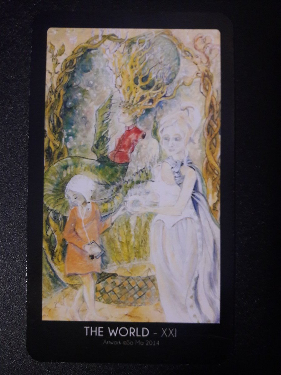 DesertRat Posted September 24, 2022 Posted September 24, 2022 (edited) I've been struggling with my spiritual path for years and years. Tarot helps me stayed centered and not go off the rails. Today she reminds me that my heritage has provided me with many spiritual gifts and successes, and my struggles are not for naught. In the end, I will have traveled the path meant for me (apparently with iPod in hand). 😉 Here's a less blurry image of The World card. Edited September 24, 2022 by DesertRat add photo