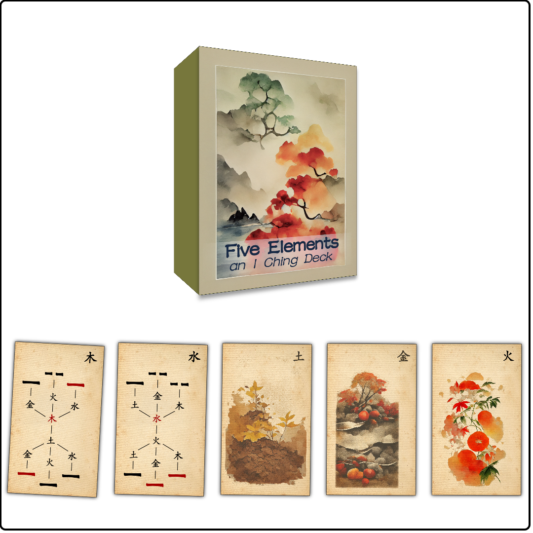 remod Posted October 5, 2022 Author Posted October 5, 2022 (edited) For those interested. I tried it. Everything is free for creators. Uploading the deck is a little bit complicated but they are working on it to simplify the process. It's a very flexible platform. I like the possibility to have more than one face for each card (which is obviously impossible in reality). Imagine having a card that has a back, you can flip it and get the face with the image, you can flip it again and get the face with the explanation. I tried to use this feature: my deck has cards with a back and two faces (one with a diagram to cast I Ching lines, the other with an image). The platform also automatically generate a set of image to promote your deck. For example this one is from my deck: I'm not expecting any sale from this deck (I'm doing all this just for spreading the word about the existence of different decks for casting I Ching) but feels nice to have one's deck in the open for people to judge 🙂 If I understand correctly their Terms and Conditions, you keep all the rights on the deck (of course) but you can't put it on line on platforms similar to theirs. They also help you sell physical copies of your deck by allowing you to put a link to where your deck can be bought. You can use multiple spread layouts or design your own (I had to do it). I plan to prepare a variation of my 8 cards deck and put that on as well. I need to understand better how to add a guidebook to the deck. Edited October 5, 2022 by remod