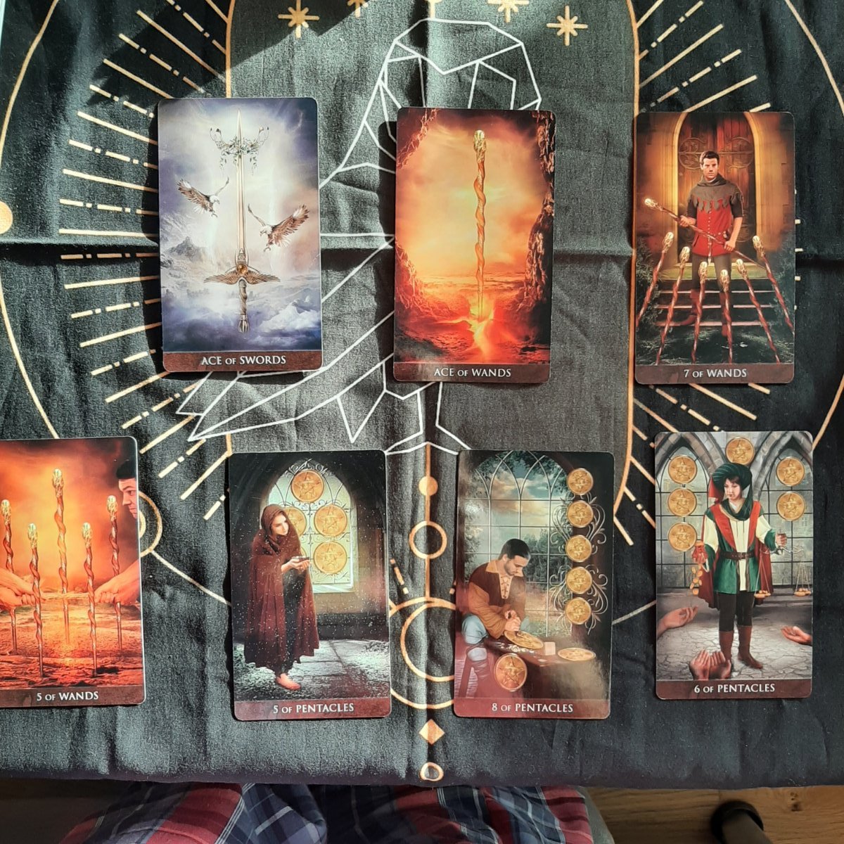 MichaelH Posted October 15, 2022 Posted October 15, 2022 Here's a photo of my daily card drawings from the Arcanum deck. It's been great to work with this deck, I love some of the images and though it seems soft and arty it has provided some interesting readings in all situations. It's not a diverse deck at all, all the images are of European people and all the couples are heterosexual. Some of the traditionally male figures do seem to be more femme or gender-ambiguous though, including some of the Pages. You can see an example of this in the figure in the Six of Pentacles which came out for me today. A deck I'd be happy to recommend if you like your cards arty.