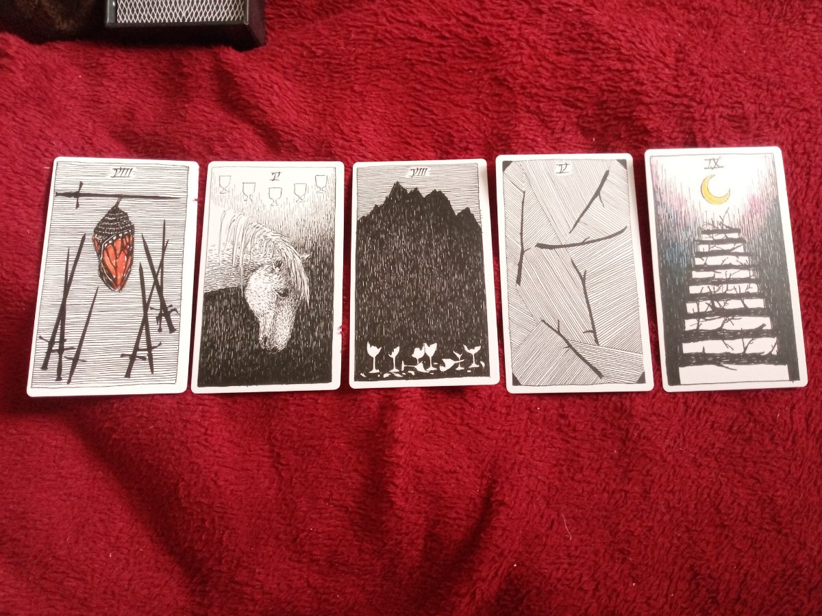 stephanelli Posted November 4, 2022 Posted November 4, 2022 I've been enjoying using the Wild Unknown Tarot this week but it's given quite a negative slant on things that haven't really been that bad. Here are my daily draws for this week (Mon - Fri) Mon - 8 of Swords This indicated that I'd be trapped and powerless. While there were things that I had to do that day, no other option, this card made it seem much more dramatic and negative than it felt like. Tue - 5 of Cups This indicated grief and disappointment. I did experience disappointment in one of my projects, but nothing that couldn't be fixed. Wed - 8 of Cups This indicated stagnation and ill health and telling me that I needed to move on with something. I couldn't actually work out what this related to other than moving on from the disappointment of the project on Tuesday and working out how to make it better in the second attempt! Thu - 5 of Wands This card indicated that I'd have a lack of focus and would feel scattered and actually this card was 100% accurate 😆 I just couldn't focus and didn't know where to direct my energies! Fri - 9 of Wands This is today's card so I'm predicting here. This card indicates strength, stamina and confidence. The guidebook suggests I'm going weary of something and need to look forward to the last few steps so I can get something completed. This could relate to the weaving project that is nearly complete, but I wouldn't say I'm growing weary of it, just that is nearly ffinished I remember why I like this deck though. The artwork is beautiful and I like not having people in a deck sometimes! I'm sure this will come up in my DotW again in the future, but I'm going to move on from it next week!