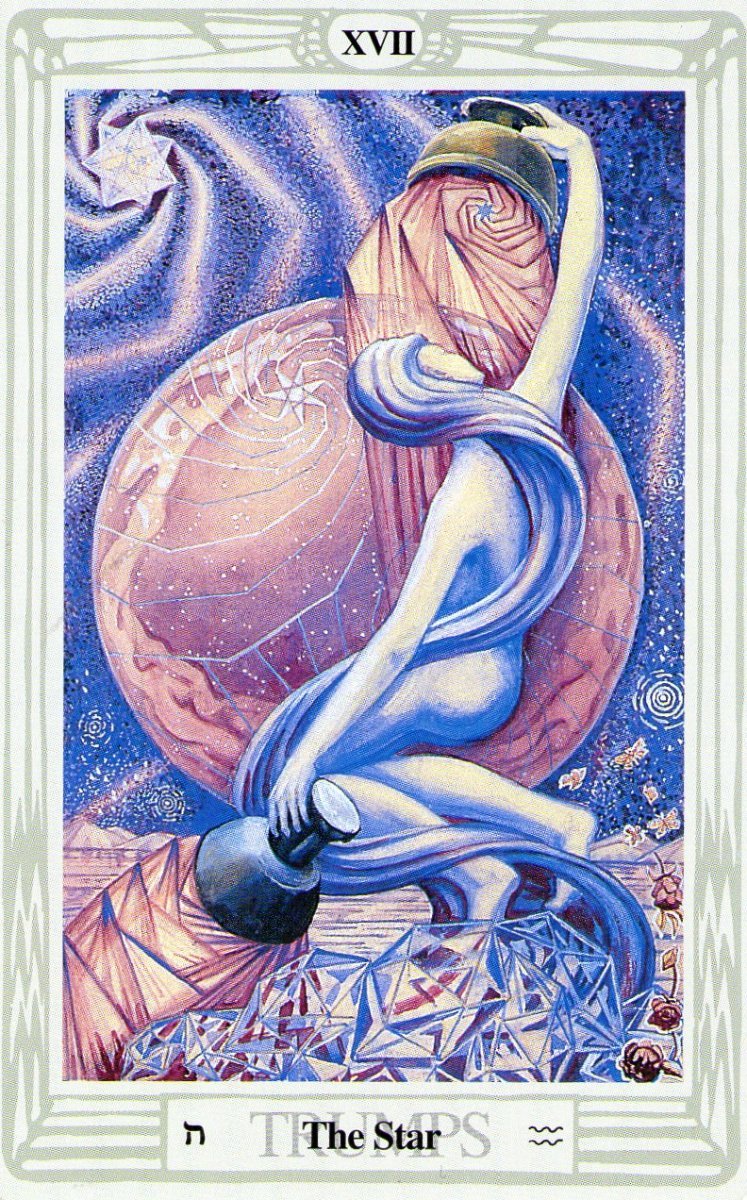 The_Aeon Posted April 24, 2023 Posted April 24, 2023 On 4/15/2023 at 12:48 AM, Wyrdkiss said: It depends on the deck, but two cards I always assess quickly in a tarot are The Star and the 8 of Wands. The Star from the Thoth is one of my fav cards in that pack, and I love a lot of the art inked by Lady Harris in A.C.'s deck. Provided here for your reference. To me it represents an immensely sacred space. The other-worldly serenity and comfort only the spirit, and nature, can provide. i Love the Star in the Thoth