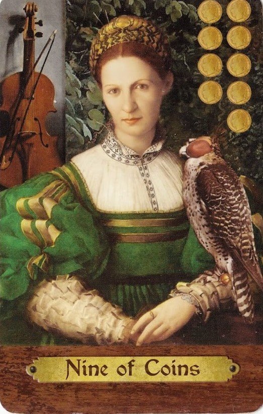 Nemia Posted August 11, 2023 Posted August 11, 2023 One of my all-time favourite cards must be the Pharos Tarot's Star. It's Nut, it's Elbereth Gilthoniel, it's what Kant sees when he looks up and inside at the same time. This is one of the most amazing cards ever. Artistically, this can't be topped for me. I love many decks and many cards but this one is special. Then of course there is the Nine of Coins as envisioned by Kat Black in the Touchstone Tarot. She didn't only use Agnolo Bronzino's 1530s portrait of a Lady in Green, she really understood this lady and put her in surroundings that tell us more about her. Is it possible to improve on Bronzino? I don't know but I feel as though he would have loved that card. It's my avatar and I'm very fond of Bronzino, this deck and this card. If the Star is my spiritual side, looking up at the stars in wonder, the Nine of Coins is my practical side, or how I would love to be - serene, purposeful, confident. All the cards, majors and minors and courts, are important and meaningful, and it's hard to pick one, but probably Temperance is the one archetype that is especially dear to me. I'm not a well-balanced person by nature and Temperance tells me gently how important moderation in everything is. Temperance is beautiful in most decks; the Cosmic is among my favourites. And then there is something about the Princess of Disks in the Thoth that makes her even more special than the other cards of that deck. It's the image of Malkuth, the glory of our Earth.