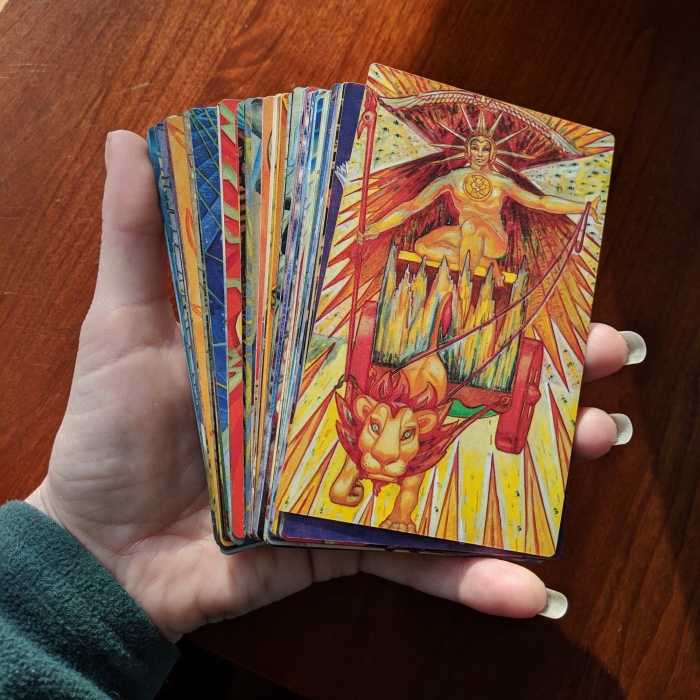 This is a large Thoth deck I just finished trimming and edging for a New Year’s gift.