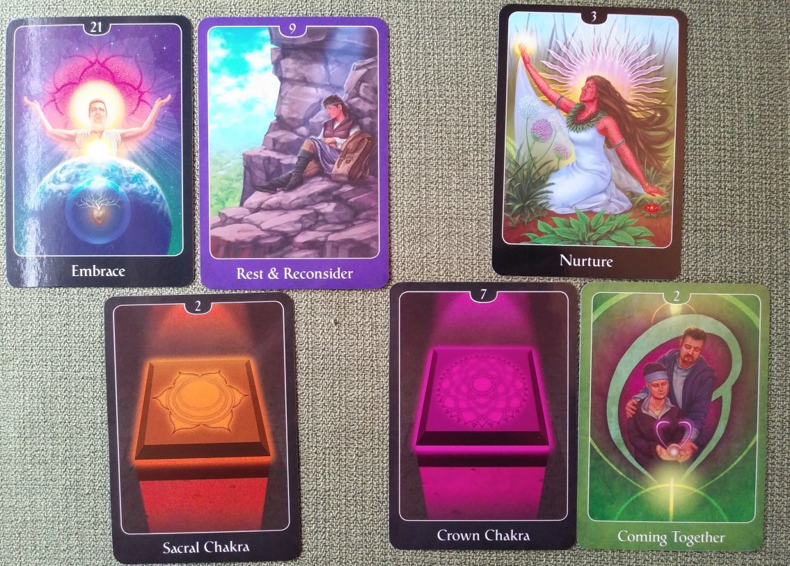 Rachelcat Posted February 25, 2023 Posted February 25, 2023 Hi, everyone! Ooo, Tao Oracle and the Brownies! Can't wait to see those in action! Something different for me this week. We were trading decks around at a tarot society meeting, and I ended up with John Holland’s Psychic Tarot for the Heart Oracle Deck (2014). I had his earlier Psychic Tarot Oracle Deck (2007) in the past, and I kept it for a while because I liked the art, but eventually passed it on. So I just got it again to compare the decks and the keywords. The formats of the decks are the same. Chunky, laminated Hay House decks. Contemporary style art. Keywords. No courts or 10s (for numerological reasons). Chakra cards are added. An emphasis on color. Suits are called Physical, Emotions, Mental, and Spirit. The keywords for the two decks are different, but I’m not really seeing that the first is more general and the second is for love or romance. They’re just different! We’ll see if that holds true as I work with them this week. Not sure how I’m going to compare the decks, maybe just draw the same cards in each and put them side by side! In the meantime, separate interviews. Psychic Tarot Oracle Deck Most important characteristic: 3 Spirit, Partnership & Alliances The deck works if you work with it. It will like being paired with its sibling! Strength: Base Chakra Obviously, I left the chakra cards in! Even though it seems to contrast with the other cards in this reading, the deck is basic in a good way: down to earth and practical. Also nourishing and good for beginners because of the keywords I guess. Weakness: 4 Spirit, Foundation & Achievements The illustration looks more like 10 Cups. Maybe that’s the meta weakness: The illustrations aren’t all that intuitive. The deck is a little distant from it’s base/foundation, the RWS. Not because of interpretive differences, but just to be different. What the deck can teach me: 6 Mental, Moving On Pair of 6s and the Sun, so looks all good! The deck can teach me that not all decks with keywords are to be avoided! I can let go and let the deck take me to a different place than I usually go with readings. How I can learn it: 6 Spirit, Victory & Success Assume success! Just because it looks easy doesn’t mean it’s easy, but easy or difficult, I can do it! This looks more like a Fool card, but hopefully he’s not marching off the cliff, he’s just standing on the heights (6) to signal victory with his horn. Outcome of our work together: 19. Light I really like this illustration. She’s reaching for the light but not desperately. It’s meeting her as she greets it. The deck will help me come to some understanding and will encourage me. We’ll definitely work well together! Psychic Tarot for the Heart Oracle Deck Most important characteristic: Sacral Chakra The deck is about pleasure and enjoyment. It will be fun to work with. Strength: 9 Spirit, Rest & Reconsider Instead of desperately trying to defend herself, she’s taking a break on her journey across the craggy mountain. The deck has a calming, more gentle demeanor. And the keywords seem to be more prescriptive, which I like. I like reading for advice more than prediction. Weakness: 21. Embrace Illustration seems to equate crown chakra and head and earth and heart. Maybe the weakness is too much symbolism? Yeah, the deck’s weakness is that it’s bitten off more than it can chew. What the deck can teach me: 2 Emotions, Coming Together Maybe the deck is about relationships after all! Two sides come together to make one heart. How I can learn it: Crown Chakra But I can only learn it when I’ve learned everything I need to know spiritually! Well, that might take a while! Outcome of our work together: 3. Nurture She’s grounded. Feminine with long hair and beauty. I don’t see any actual nurturing, bur I guess we can assume that? The deck will nurture my interest and readings. And again, as in the first card, the experience will be pleasurable and enjoyable (Venus!). It’s been a while since I’ve gotten such positive interview readings. Let’s see if they come true!