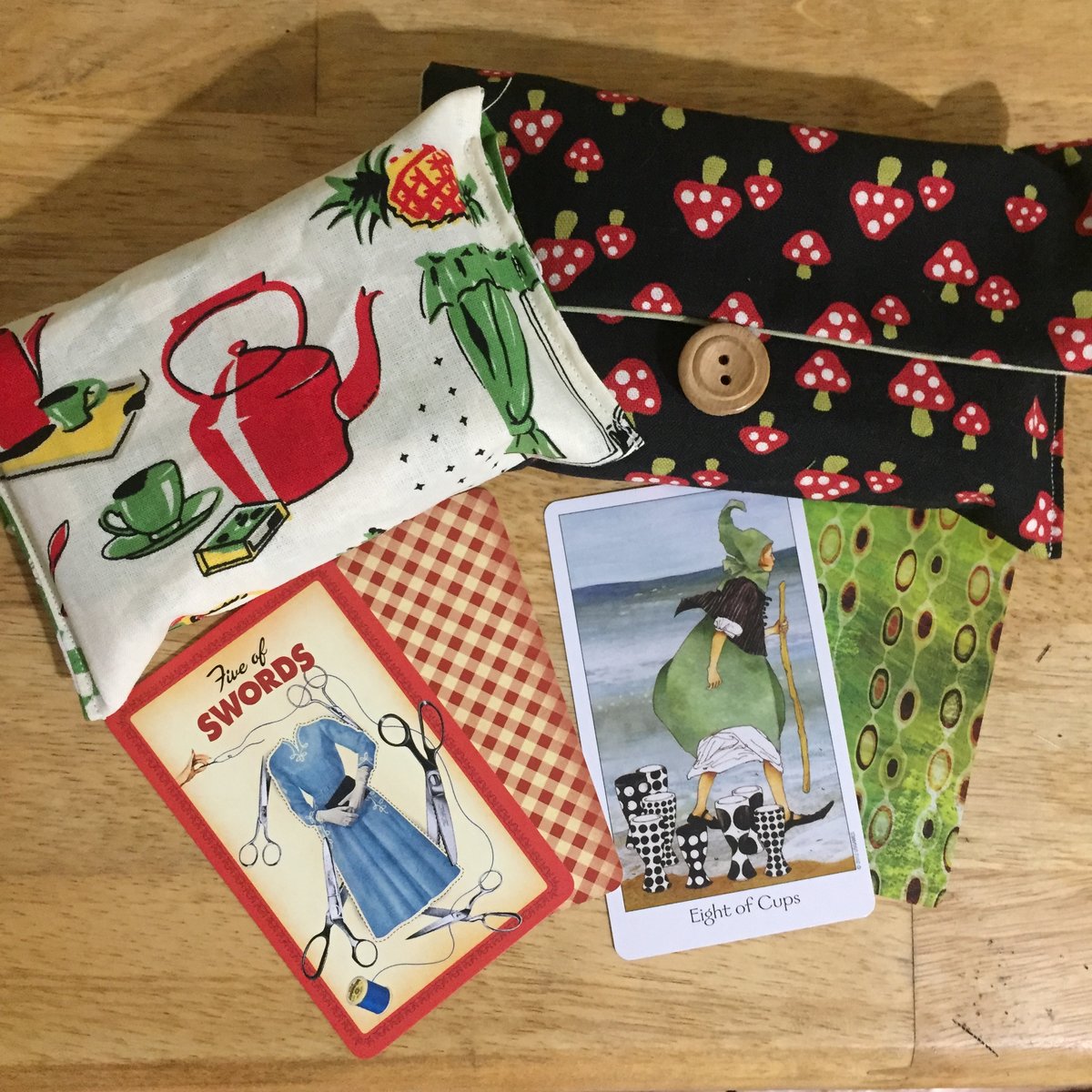 Rabbithorns Posted July 30, 2019 Posted July 30, 2019 Love the bags in this thread. I finally made some bags for two of my decks: the Dreaming Way and Housewives Tarot decks. I wanted to choose fabrics that match the style of the decks. I recently bought two more decks (WPA art deck and Nicoletta Ceccoli) and have yet to pick fabrics and sew bags for those. Maybe this week.....