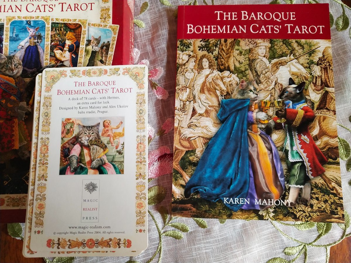 Guest Posted June 18, 2024 Posted June 18, 2024 Received quite a haul from a gracious collector. One is a first-edition Victorian Romantic Tarot deck. It was fully sealed, but I just had to open it. It's freaking gorgeous! Too bad I don't have the companion book. I wonder if the book for the third or fourth edition will suffice? The seller gave me a friendly deal for The Baroque Bohemian Cats' Tarot deck and book set. It's a first edition and unsealed, but he told me the cards were very sparingly used. They were in excellent, pristine condition so I believe him. Baba Studios is bound to release a theater-themed cat deck later this year or next, so I believe this deck is firmly OOP. One never knows with them though.