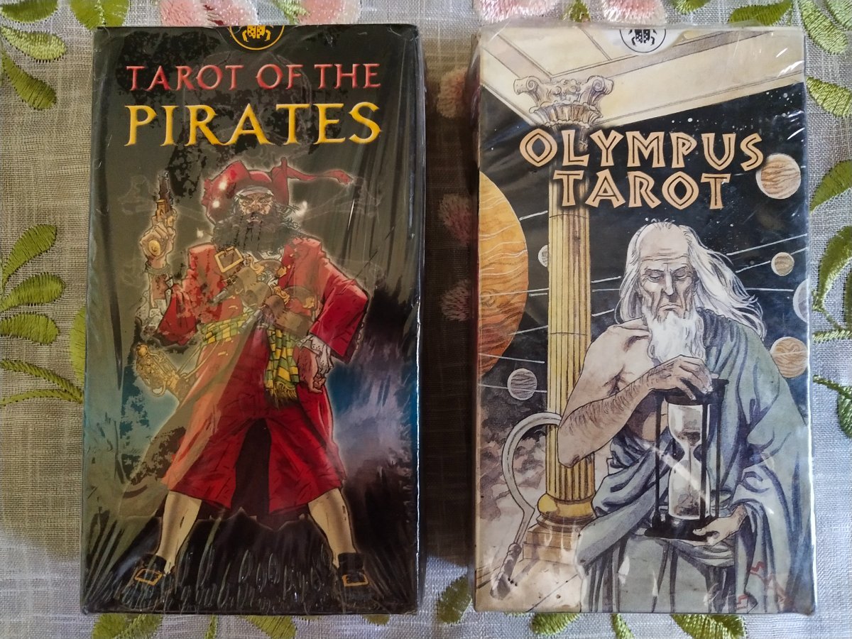 Guest Posted July 4, 2024 Posted July 4, 2024 Just recently, I was able to acquire four brand new and sealed OOP Lo Scarabeo decks from a local collector. He was a guy too, so I was delighted by their themes of epic exploration and unbridled adventure. Testosterone Overload! I didn't know that a Tarot of the Pirates exists, but now that I do I'm lovin it! Will definitely work with it soon. I do wonder why the Olympus Tarot faded away from the tsunami of Greek mythology-themed decks that swamped the market. I like its art a lot better, and most of the correspondences were spot on. The Avalon Tarot is the third and rarest among my Arthurian Tarots. I also have the extensive set by Matthews and the Legend: the Arthurian Tarot deck and book kit. Now that I checked the last one out, it seems like it's also OOP now. Might have to shell out for an additional copy while it's still affordable since I love how fully it explores the Matter of Britain. Ah, the Samurai Tarot! I loved watching those oriental swashbucklers even as a kid, and while I knew all about this deck even when I was just starting out, I sorta dismissed ever owning it due to the prohibitive price. I'm just glad that I'm able to acquire it now, and in a pristine and excellent condition at that! I was initially concerned since among the four decks, the Samurai has no external seal. There was no reason to worry though, since the deck inside was airtight. It was actually double sealed, since aside from the gold-lined plastic that covers the very cards themselves, outside it was another seal that envelopes the LWB along with it. And what a tract that is! I sorta had the conception that most antique Lo Scarabeos have cookie-cutter booklets, but not this one.