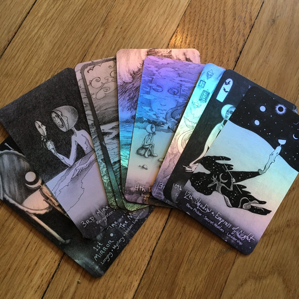 caliway Posted April 11, 2023 Posted April 11, 2023 This is a super unusual Oracle deck 🙂 I created the art for it in my 20's when I was backpacking across Eastern Europe, and almost entirely on A5 paper using pencil and ballpoint pen. The "main character" of the deck is The Inner Mask, a being whose face is a mask that looks within itself, and is driven by the question "who am I?"   Thanks for looking 🙂 🙂